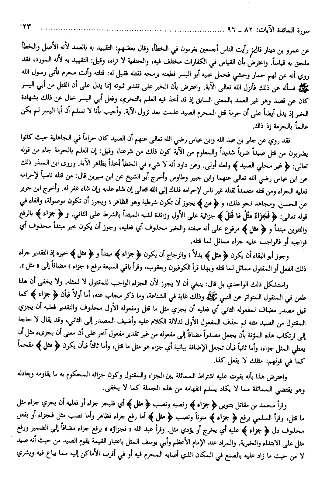 واستشكل ذلك الواحدي بل قال: ينبغي أن لا يجوز لأن الجزاء الواجب للمقتول لا لمثله. ولا يخفى أن هذا طعن في المنقول المتواتر عن النبي صلّى الله عليه وسلّم وذلك غاية في الشناعة، وما ذكر مجاب عنه، أما أولا فبأن جزاء كما قيل مصدر مضاف لمفعوله الثاني أي فعليه أن يجزي مثل ما قتل ومفعوله الأول محذوف والتقدير فعليه أن يجزي المقتول من الصيد مثله ثم حذف المفعول الأول لدلالة الكلام عليه وأضيف المصدر إلى الثاني، وقد يقال لا حاجة إلى ارتكاب هذه المئونة بأن يجعل مصدرا مضافا إلى مفعوله من غير تقدير مفعول آخر على أن معنى أن يجزىء مثل أن يعطي المثل جزاء، وأما ثانيا فبأن تجعل الإضافة بيانية أي جزاء هو مثل ما قتل، وأما ثالثا فبأن يكون مِثْلُ مقحما كما في قولهم: مثلك لا يفعل كذا.