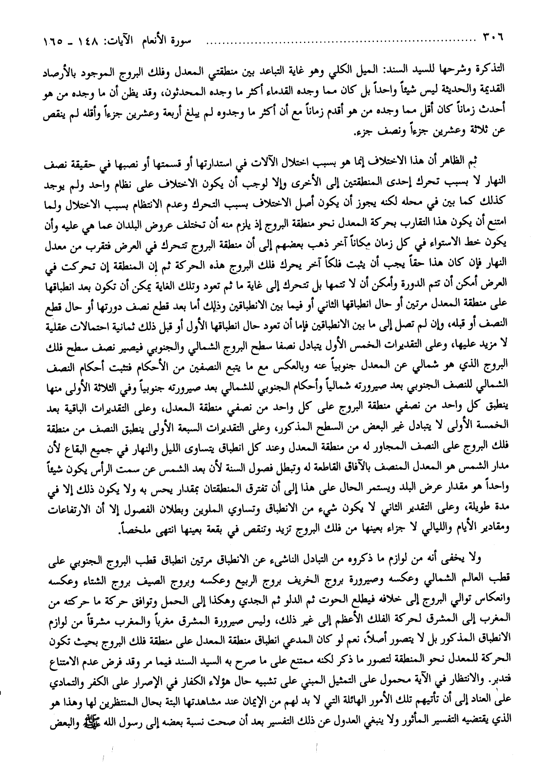 ولا يخفى أنه من لوازم ما ذكروه من التبادل الناشئ عن الانطباق مرتين انطباق قطب البروج الجنوبي على قطب العالم الشمالي وعكسه وصيرورة بروج الخريف بروج الربيع وعكسه وبروج الصيف بروج الشتاء وعكسه وانعكاس توالي البروج إلى خلافه فيطلع الحوت ثم الدلو ثم الجدي وهكذا إلى الحمل وتوافق حركة ما حركته من المغرب إلى المشرق لحركة الفلك الأعظم إلى غير ذلك، وليس صيرورة المشرق مغربا والمغرب مشرقا من لوازم الانطباق المذكور بل لا يتصور أصلا، نعم لو كان المدعي انطباق منطقة المعدل على منطقة فلك البروج بحيث تكون الحركة للمعدل نحو المنطقة لتصور ما ذكر لكنه ممتنع على ما صرح به السيد السند فيما مر وقد فرض عدم الامتناع فتدبر. والانتظار في الآية محمول على التمثيل المبني على تشبيه حال هؤلاء الكفار في الإصرار على الكفر والتمادي على العناد إلى أن تأتيهم تلك الأمور الهائلة التي لا بد لهم من الإيمان عند مشاهدتها البتة بحال المنتظرين لها وهذا هو الذي يقتضيه التفسير المأثور ولا ينبغي العدول عن ذلك التفسير بعد أن صحت نسبة بعضه إلى رسول الله صلّى الله عليه وسلّم والبعض