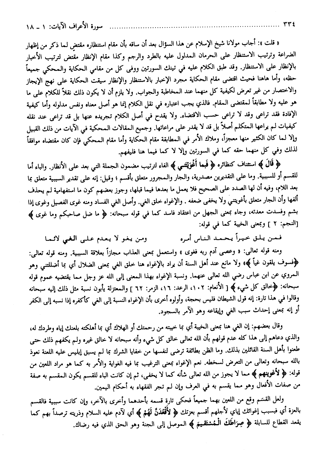 وقال بعضهم: إن الغي هنا بمعنى الخيبة أي بما خيبته من رحمتك أو الهلاك أي بما أهلكته بلعنك إياه وطردك له، والذي دعاهم إلى هذا كله عدم قولهم بأن الله تعالى خالق كل شيء وأنه سبحانه لا خالق غيره ولم يكفهم ذلك حتى طعنوا بأهل السنة القائلين بذلك. وما الظن بطائفة ترضى لنفسها من خفايا الشرك بما لم يسبق إبليس عليه اللعنة نعوذ بالله سبحانه وتعالى من التعرض لسخطه. نعم الإغواء بمعنى الترغيب بما فيه الغواية والأمر به كما هو مراد اللعين من قوله: لَأُغْوِيَنَّهُمْ مما لا يجوز من الله تعالى شأنه كما لا يخفى، ثم إن كانت الباء للقسم يكون المقسم به صفة من صفات الأفعال وهو مما يقسم به في العرف وإن لم تجر الفقهاء به أحكام اليمين.