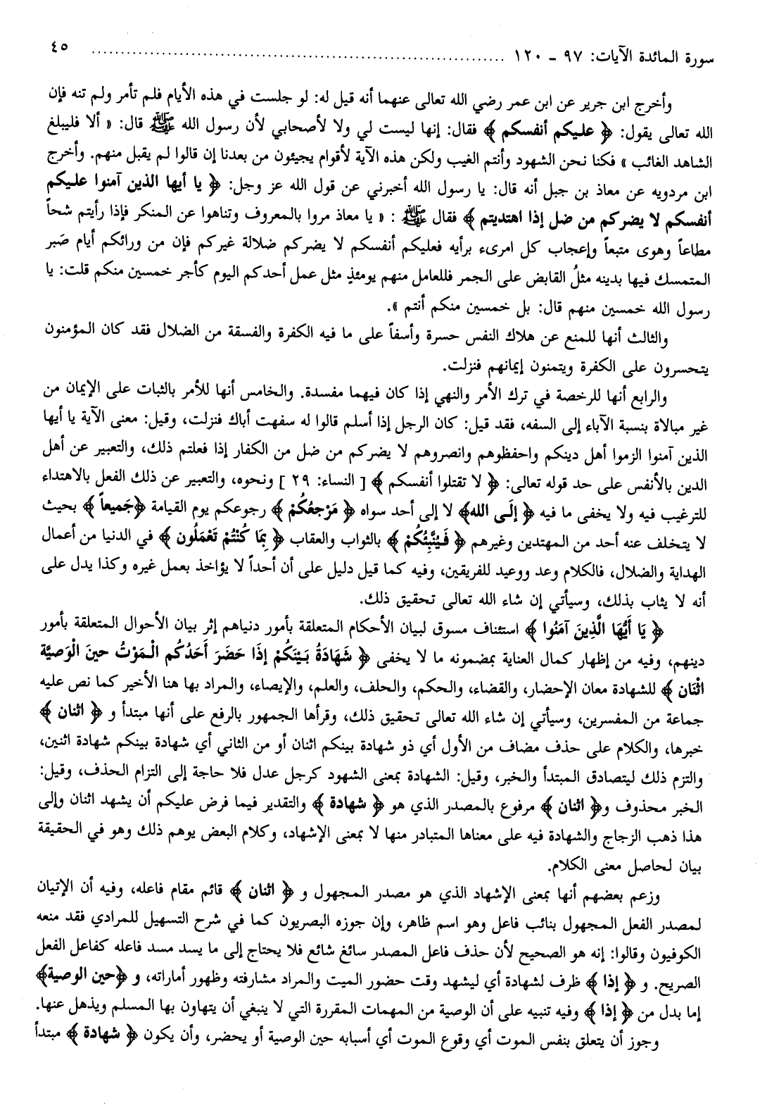 وأخرج ابن جرير عن ابن عمر رضي الله تعالى عنهما أنه قيل له: لو جلست في هذه الأيام فلم تأمر ولم تنه فإن الله تعالى يقول: عَلَيْكُمْ أَنْفُسَكُمْ فقال: إنها ليست لي ولا لأصحابي