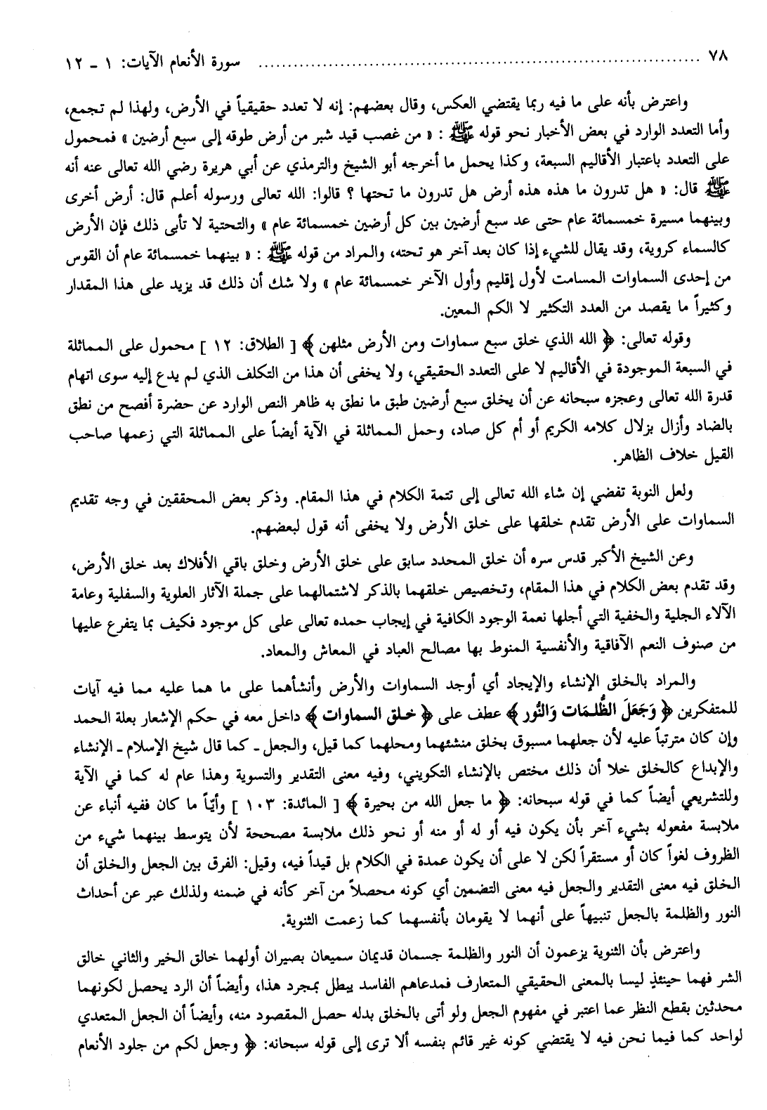 وقوله تعالى: اللَّهُ الَّذِي خَلَقَ سَبْعَ سَماواتٍ وَمِنَ الْأَرْضِ مِثْلَهُنَّ [الطلاق: 12] محمول على المماثلة في السبعة الموجودة في الأقاليم لا على التعدد الحقيقي، ولا يخفى أن هذا من التكلف الذي لم يدع إليه سوى اتهام قدرة الله تعالى وعجزه سبحانه عن أن يخلق سبع أرضين طبق ما نطق به ظاهر النص الوارد عن حضرة أفصح من نطق بالضاد وأزال بزلال كلامه الكريم أو أم كل صاد، وحمل المماثلة في الآية أيضا على المماثلة التي زعمها صاحب القيل خلاف الظاهر.