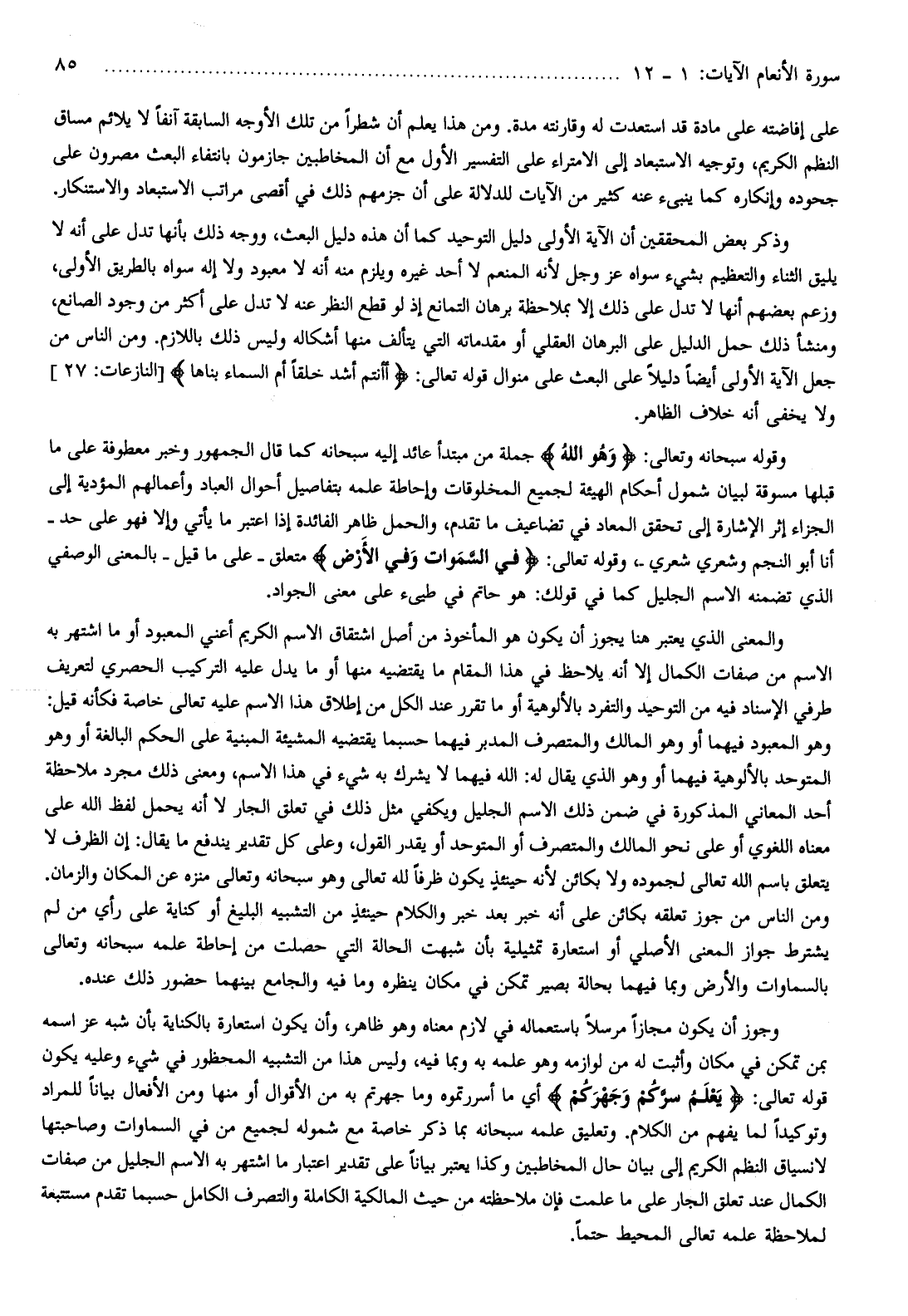 وجوز أن يكون مجازا مرسلا باستعماله في لازم معناه وهو ظاهر، وأن يكون استعارة بالكناية بأن شبه عز اسمه بمن تمكن في مكان وأثبت له من لوازمه وهو علمه به وبما فيه، وليس هذا من التشبيه المحظور في شيء وعليه يكون قوله تعالى: يَعْلَمُ سِرَّكُمْ وَجَهْرَكُمْ أي ما أسررتموه وما جهرتم به من الأقوال أو منها ومن الأفعال بيانا للمراد وتوكيدا لما يفهم من الكلام. وتعليق علمه سبحانه بما ذكر خاصة مع شموله لجميع من في السماوات وصاحبتها لانسياق النظم الكريم إلى بيان حال المخاطبين وكذا يعتبر بيانا على تقدير اعتبار ما اشتهر به الاسم الجليل من صفات الكمال عند تعلق الجار على ما علمت فإن ملاحظته من حيث المالكية الكاملة والتصرف الكامل حسبما تقدم مستتبعة لملاحظة علمه تعالى المحيط حتما.