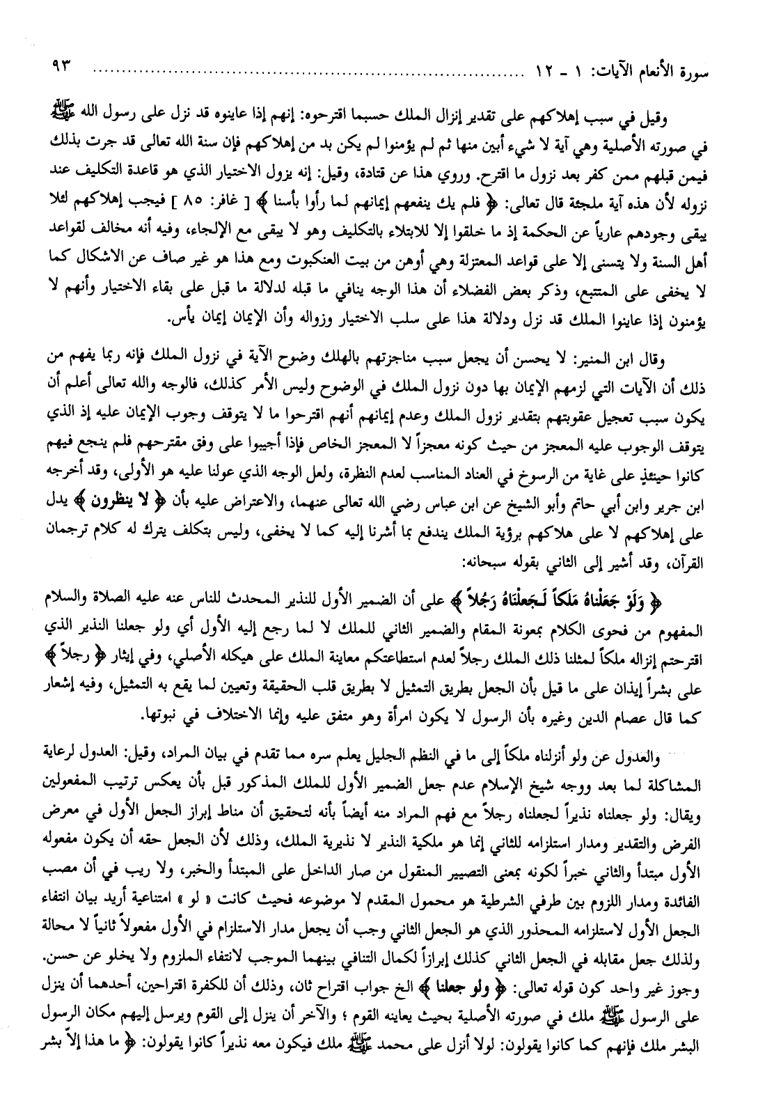 وقال ابن المنير: لا يحسن أن يجعل سبب مناجزتهم بالهلك وضوح الآية في نزول الملك فإنه ربما يفهم من ذلك أن الآيات التي لزمهم الإيمان بها دون نزول الملك في الوضوح وليس الأمر كذلك، فالوجه والله تعالى أعلم أن يكون سبب تعجيل عقوبتهم بتقدير نزول الملك وعدم إيمانهم أنهم اقترحوا ما لا يتوقف وجوب الإيمان عليه إذ الذي يتوقف الوجوب عليه المعجز من حيث كونه معجزا لا المعجز الخاص فإذا أجيبوا على وفق مقترحهم فلم ينجع فيهم كانوا حينئذ على غاية من الرسوخ في العناد المناسب لعدم النظرة، ولعل الوجه الذي عولنا عليه هو الأولى، وقد أخرجه ابن جرير وابن أبي حاتم وأبو الشيخ عن ابن عباس رضي الله تعالى عنهما، والاعتراض عليه بأن لا يُنْظَرُونَ يدل على إهلاكهم لا على هلاكهم برؤية الملك يندفع بما أشرنا إليه كما لا يخفى، وليس بتكلف يترك له كلام ترجمان القرآن، وقد أشير إلى الثاني بقوله سبحانه: