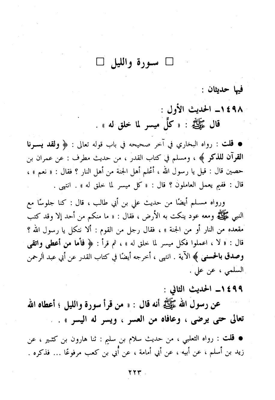 عَن رَسُول الله صَلَّى اللَّهُ عَلَيْهِ وَسَلَّم َ انه قَالَ من قَرَأَ سُورَة وَاللَّيْل أعطَاهُ الله تَعَالَى حَتَّى يرْضَى وَعَافَاهُ من الْعسر وَيسر لَهُ الْيُسْر