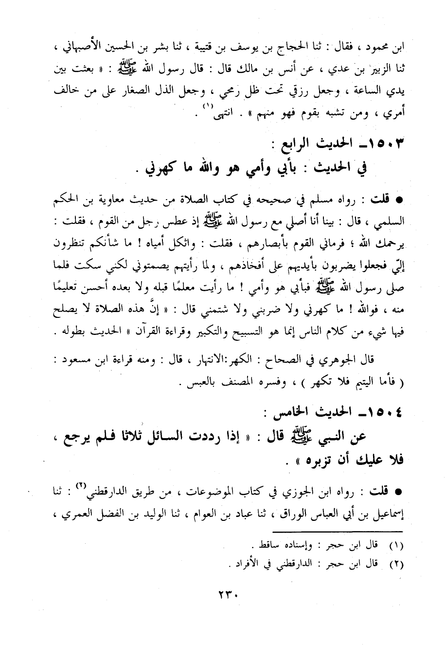 قلت رَوَاهُ مُسلم فِي صَحِيحه فِي كتاب الصَّلَاة من حَدِيث مُعَاوِيَة بن الحكم السّلمِيّ قَالَ بَينا أَنا أُصَلِّي مَعَ رَسُول الله صَلَّى اللَّهُ عَلَيْهِ وَسَلَّم َ إِذْ عطس رجل من الْقَوْم فَقلت يَرْحَمك الله فَرَمَانِي الْقَوْم بِأَبْصَارِهِمْ فَقلت وأثكل أمِّياه مَا شَأْنكُمْ تنْظرُون إِلَيّ فَجعلُوا يضْربُونَ بِأَيْدِيهِم عَلَى أَفْخَاذهم وَلما رَأَيْتهمْ يُصمتُونِي لكني سكت فَلَمَّا صَلَّى رَسُول الله صَلَّى اللَّهُ عَلَيْهِ وَسَلَّم َ فبأني هُوَ وَأمي مَا رَأَيْت معلما قبله وَلَا بعده أحسن تَعْلِيما مِنْهُ فوَاللَّه مَا كَهَرَنِي وَلَا ضَرَبَنِي وَلَا شَتَمَنِي قَالَ إِن هَذِه الصَّلَاة لَا يصلح فِيهَا شَيْء من كَلَام النَّاس إِنَّمَا هُوَ التَّسْبِيح وَالتَّكْبِير وَقِرَاءَة الْقُرْآن الحَدِيث بِطُولِهِ