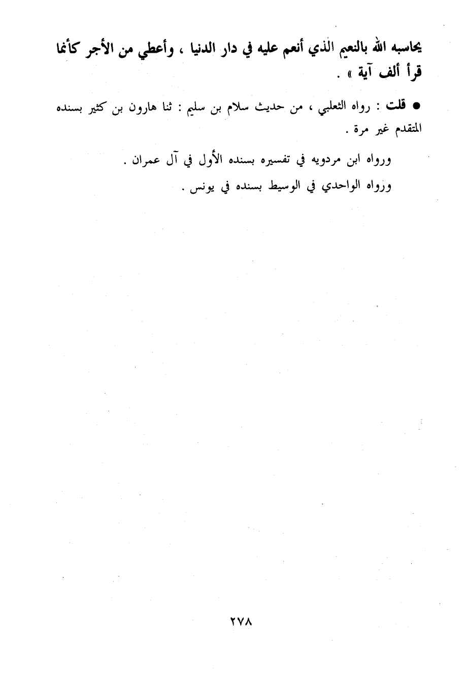 يحاسبه الله بالنعيم الَّذِي أنعم عَلَيْهِ فِي دَار الدُّنْيَا وَأعْطِي من الْأجر كَأَنَّمَا قَرَأَ ألف آيَة