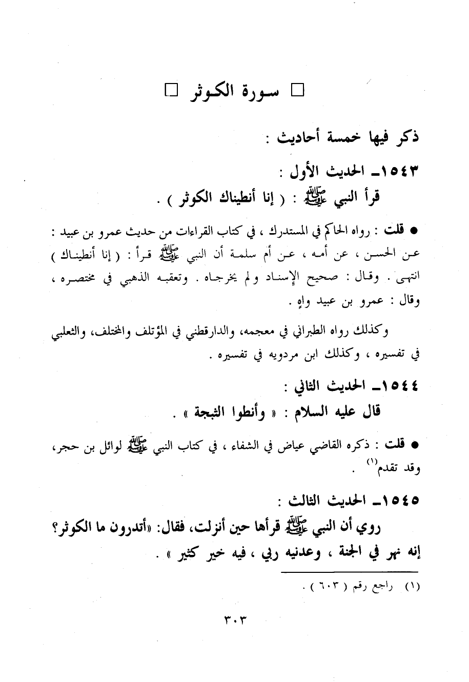 قلت رَوَاهُ الْحَاكِم فِي الْمُسْتَدْرك فِي كتاب الْقرَاءَات من حَدِيث عَمْرو بن عبيد عَن الْحسن عَن أمه عَن أم سَلمَة أَن النَّبِي صَلَّى اللَّهُ عَلَيْهِ وَسَلَّم َ قَرَأَ إِنَّا أعطيناك انْتَهَى وَقَالَ صَحِيح الْإِسْنَاد وَلم يخرجَاهُ وَتعقبه الذَّهَبِيّ فِي مُخْتَصره وَقَالَ عَمْرو بن عبيد واه