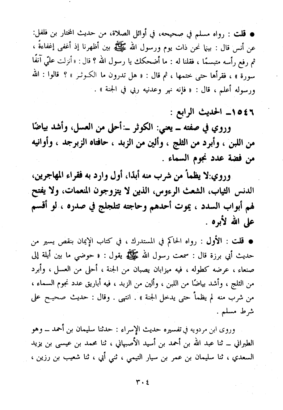 قلت رَوَاهُ مُسلم فِي صَحِيحه فِي أَوَائِل الصَّلَاة من حَدِيث الْمُخْتَار بن فلفل عَن أنس قَالَ بَيْنَمَا نَحن ذَات يَوْم وَرَسُول الله صَلَّى اللَّهُ عَلَيْهِ وَسَلَّم َ بَين أظهرنَا إِذْ أَغْفَى إغْفَاءَة ثمَّ رفع رَأسه مُتَبَسِّمًا فَقُلْنَا لَهُ مَا أضْحكك يَا رَسُول الله قَالَ أنزلت عَلّي آنِفا سُورَة فقرأها حَتَّى خَتمهَا ثمَّ قَالَ هَل تَدْرُونَ مَا الْكَوْثَر قَالُوا الله وَرَسُوله أعلم قَالَ فَإِنَّهُ نهر وعدنيه رَبِّي فِي الْجنَّة
