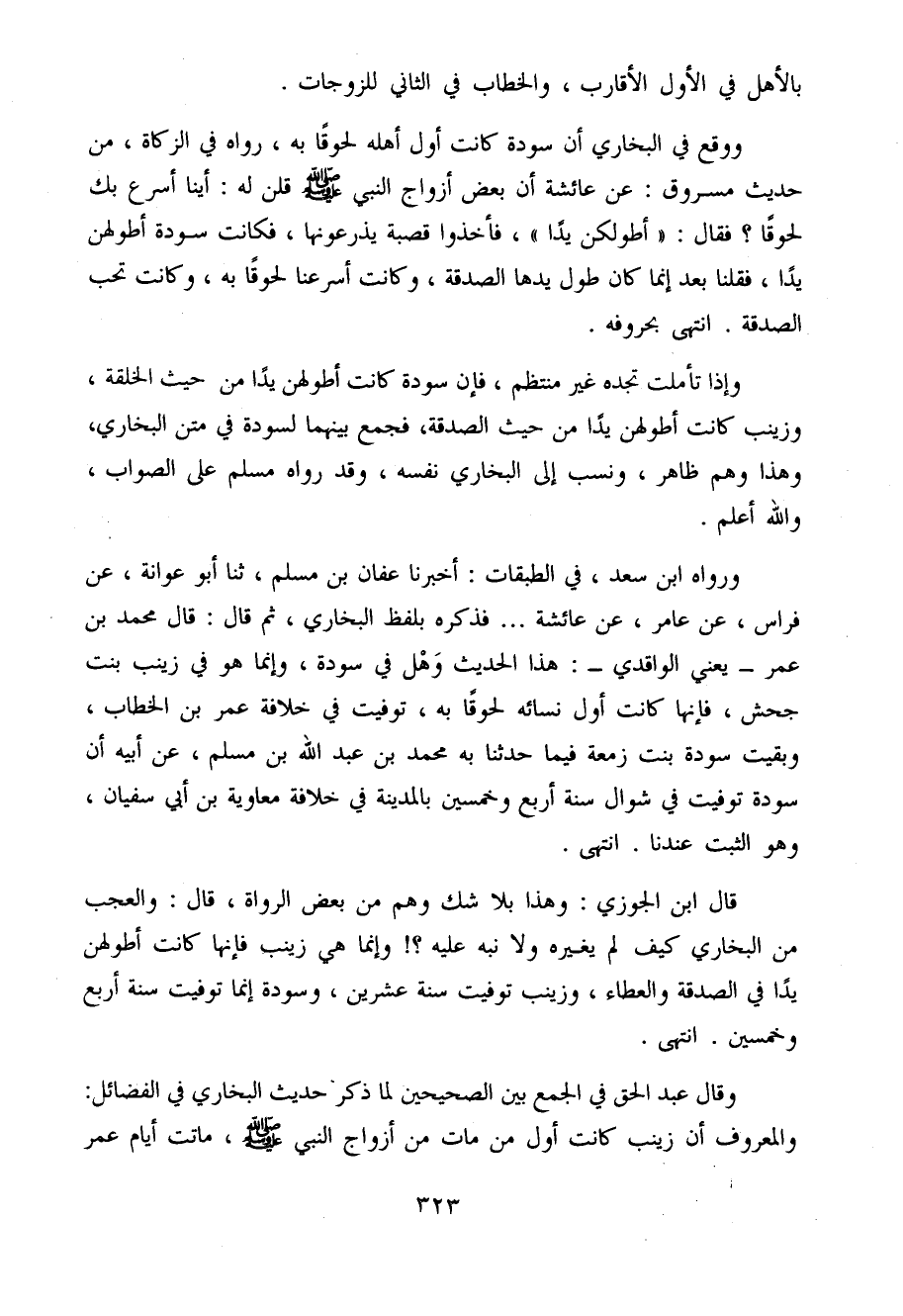 وَإِذا تَأَمَّلت تَجدهُ غير مُنْتَظم فَإِن سَوْدَة كَانَت أَطْوَلهنَّ يدا من حَيْثُ الْخلقَة وَزَيْنَب كَانَت أَطْوَلهنَّ يدا من حَيْثُ الصَّدَقَة فَجمع بَينهمَا لسودة فِي متن البُخَارِيّ وَهَذَا وهم ظَاهر وَنسب إِلَى البُخَارِيّ نَفسه وَقد رَوَاهُ مُسلم عَن الصَّوَاب وَالله أعلم