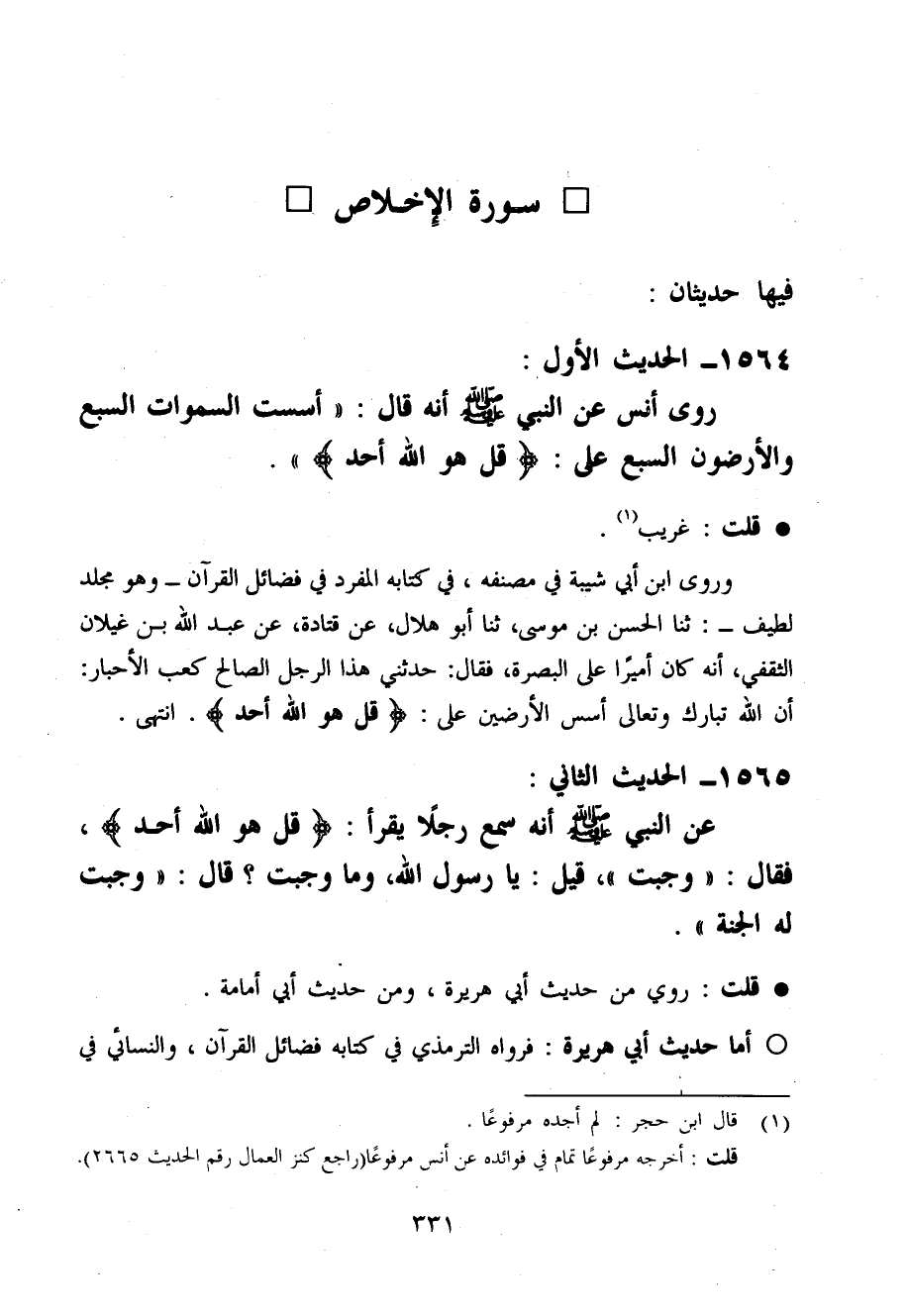رَوَى أنس عَن النَّبِي صَلَّى اللَّهُ عَلَيْهِ وَسَلَّم َ انه قَالَ أسست السَّمَوَات السَّبع والأرضون السَّبع عَلَى قل هُوَ الله اُحْدُ