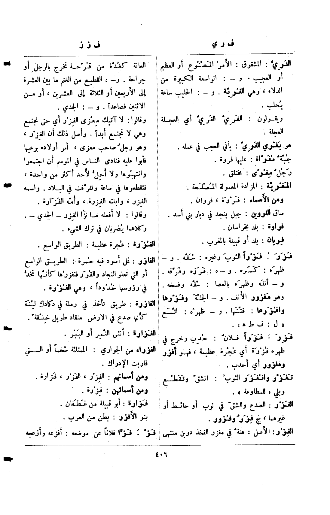 الفازر: نمل أسود فيه حمرة: الطريق الواسع أو التي تعلو النجاد والقور فتفرزها كأنها نخد في رؤوسها خدودا، وهي الفزرة.