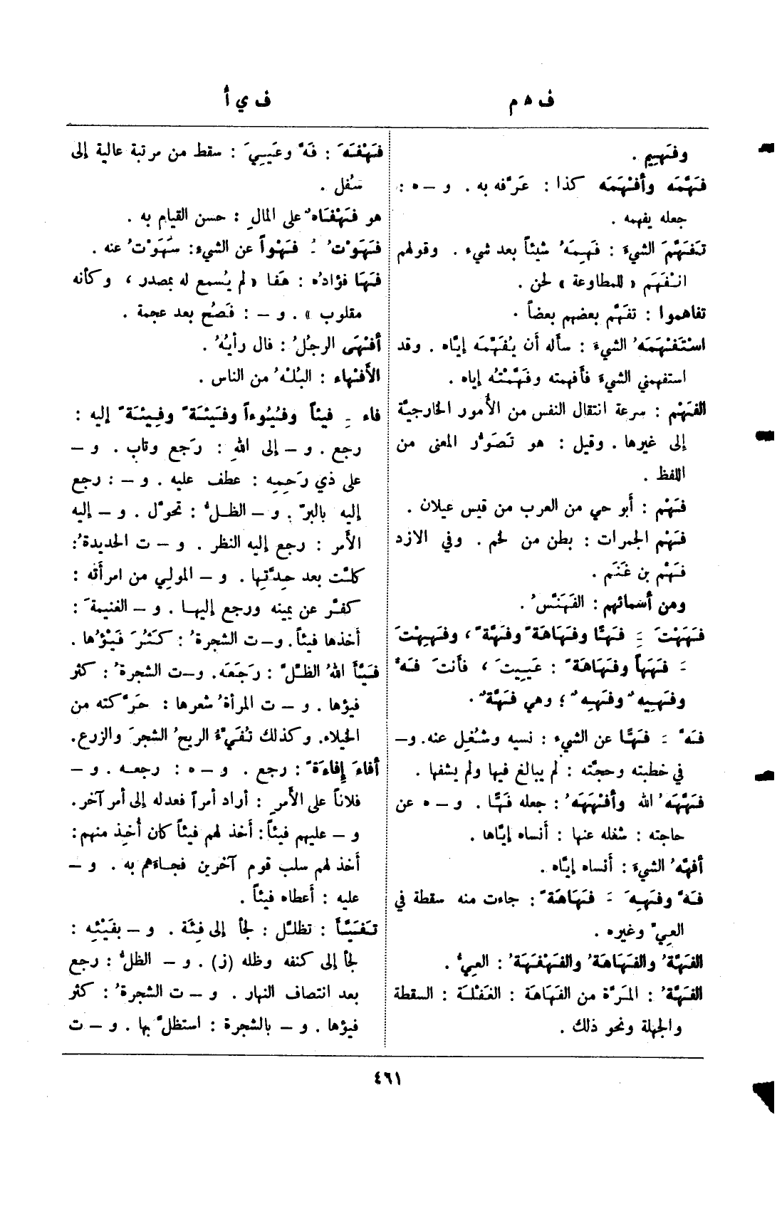 فها فؤاده: هفا " لم يسمع له بمصدر، وكأنه مقلوب". و-: فصح بعد عجمة.