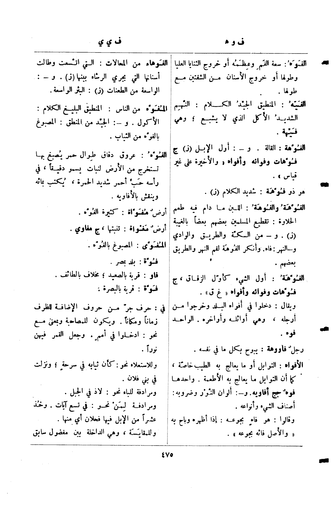 الفوهة: القالة. و-: أول الإبل (ز) ج فوهات وفوائه وأفواه (والأخيرة على غير قياس).