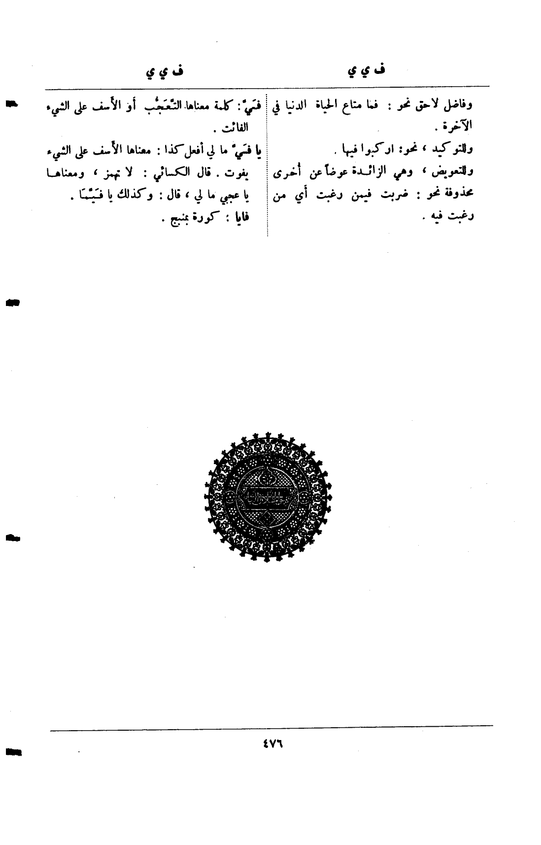 يا في ما لي أفعل كذا: معناها الأسف على الشيء يفوت. قال الكسائي: لا تهمز، ومعناها يا عجبي ما لي، قال: وكذلك يا فيما.