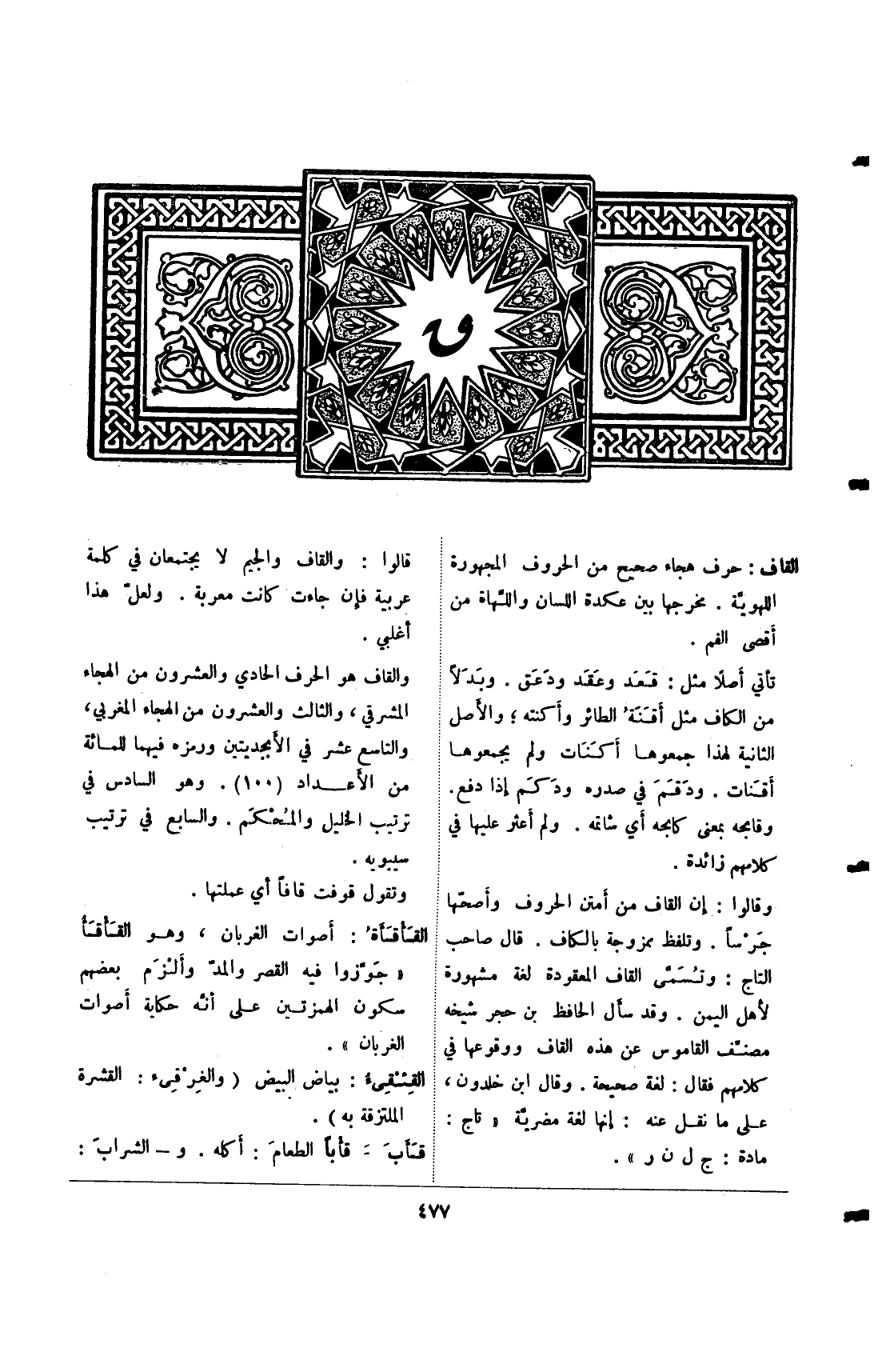 القاف: حرف هجاء صحيح من الحروف المجهورة اللهوية. مخرجها بين عكدة اللسان واللهاة من أقصى الفم.