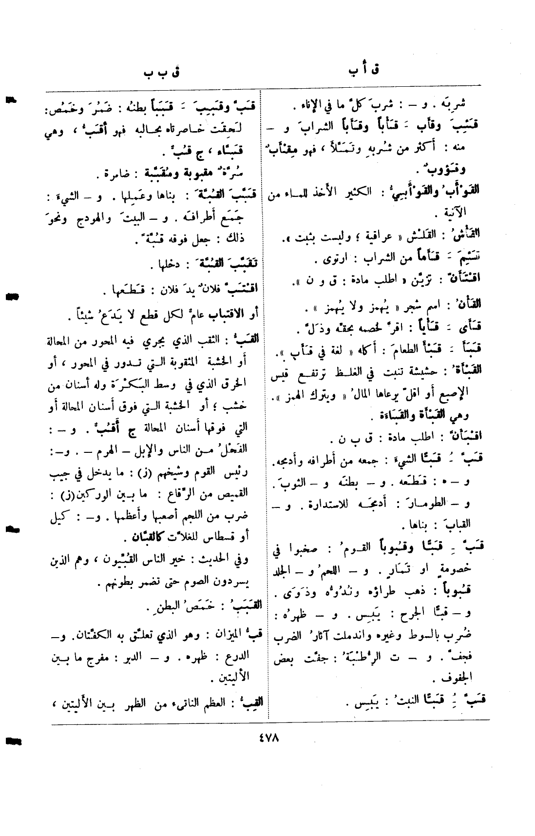 قشب وقأب- قأبا وقابا الشراب و- منه: أكثر من شربه وتملأ، فهو مقأب وفؤوب.