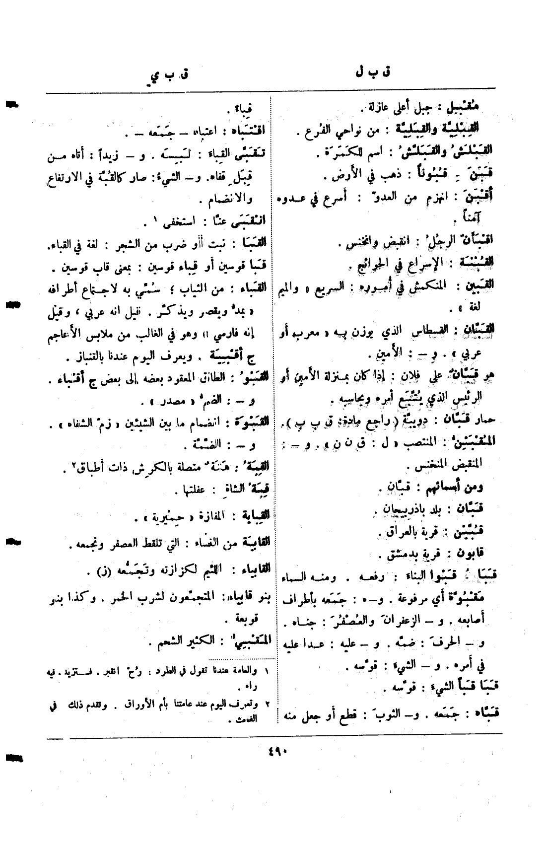 القبو: ال؟ ؟ ؟ المعقود بعضه إلى بعضه ج أقباء. و-: الضم "مصدر".