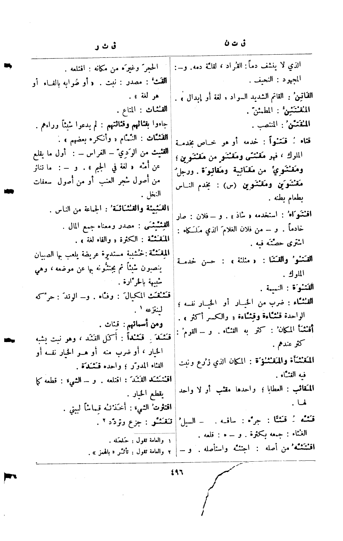 القث: مصدر: نبت. "أو صوابه بالفاء أو هو لغة".