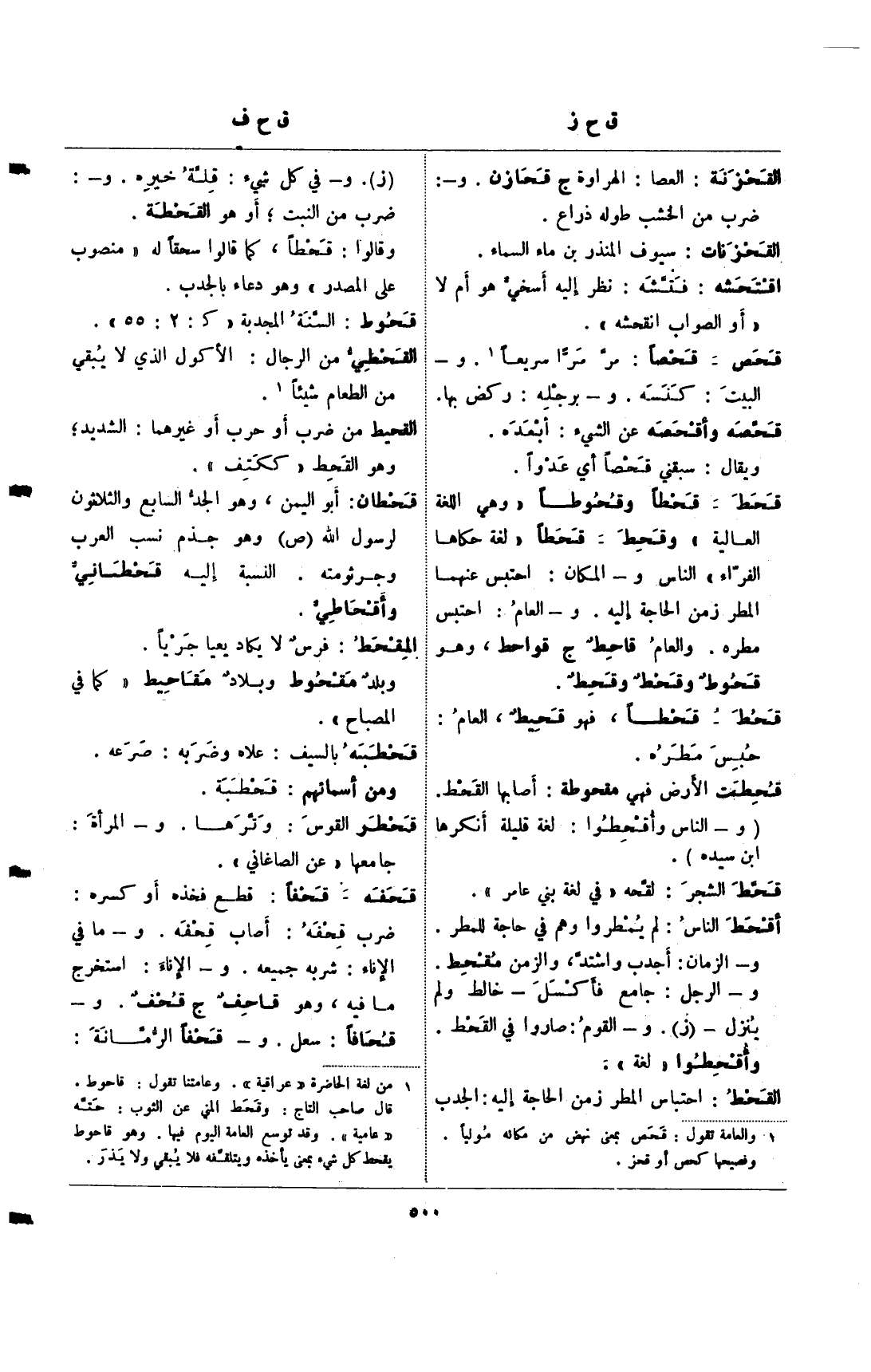 (¬2) من لغة الحاضرة "عراقية". وعامتنا تقول: قاحوط. قال صاحب التاج: وقحط المني عن الثوب: حته "عامية". وقد توسع العامة اليم فيها. وهو قاحوط يقحط كل شيء بمعنى يأخذه ويتلقفه فلا يبقي ولا يذر.