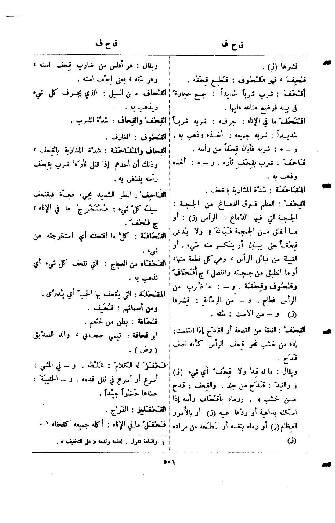 اقتحف ما في الإناء: جرفه: شربه شربا شديدا: شربه جميعه: أخذه وذهب به. و- هـ: ضربه فأبان قحفا من رأسه.