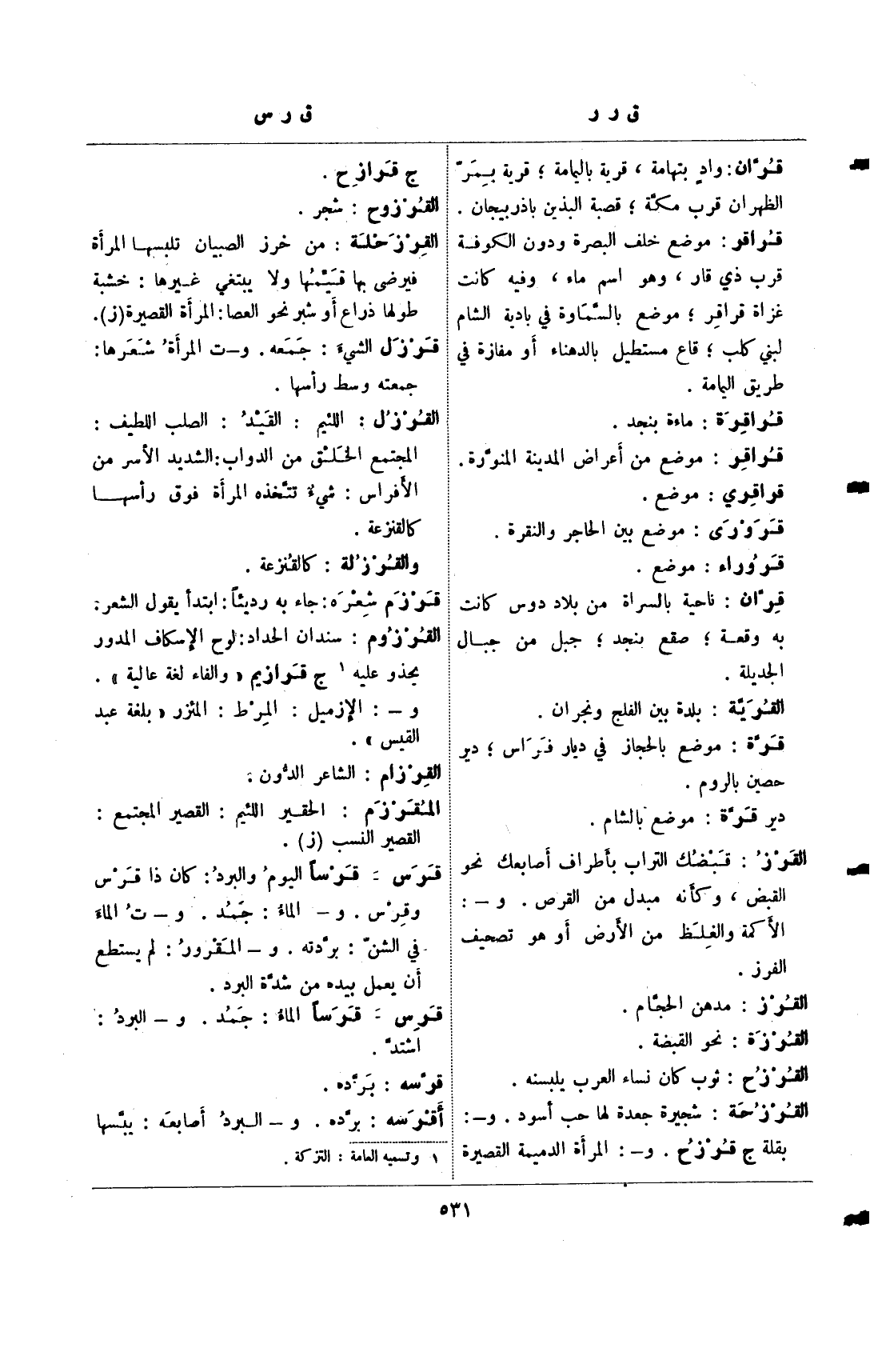قران: واد بتهامة، قرية باليمامة؛ قرية يمر الظهران قرب مكة؛ قصبة البذين باذربيجان.