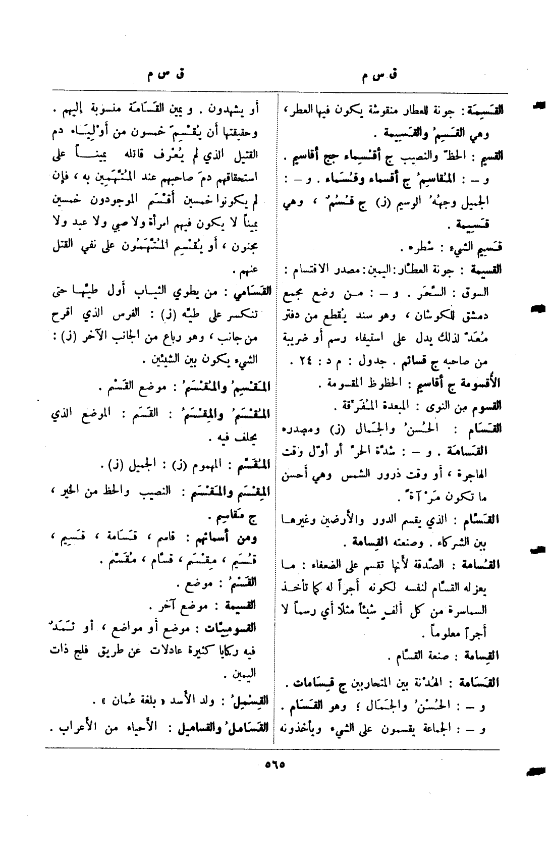 القسامي: من يطوي الثياب أول طيها حتى تنكسر على طيه (ز): الفرس الذي اقرح من جانب، وهو رباع من الجانب الآخر (ز): الشيء يكون بين الشيئين.