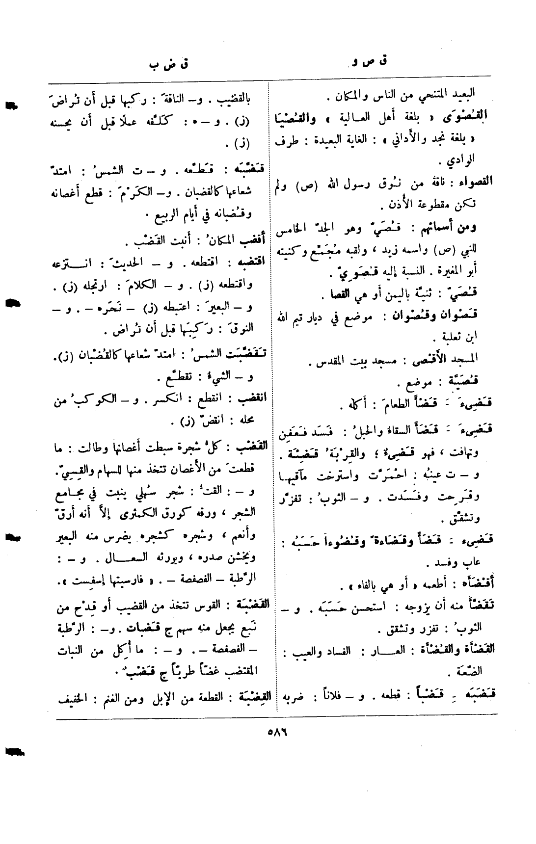 قضبه: قطعه. و- ت الشمس: امتد شعاعها كالقضبان. و- الكرم: قطع أغصانه وقضبانه في أيام الربيع.