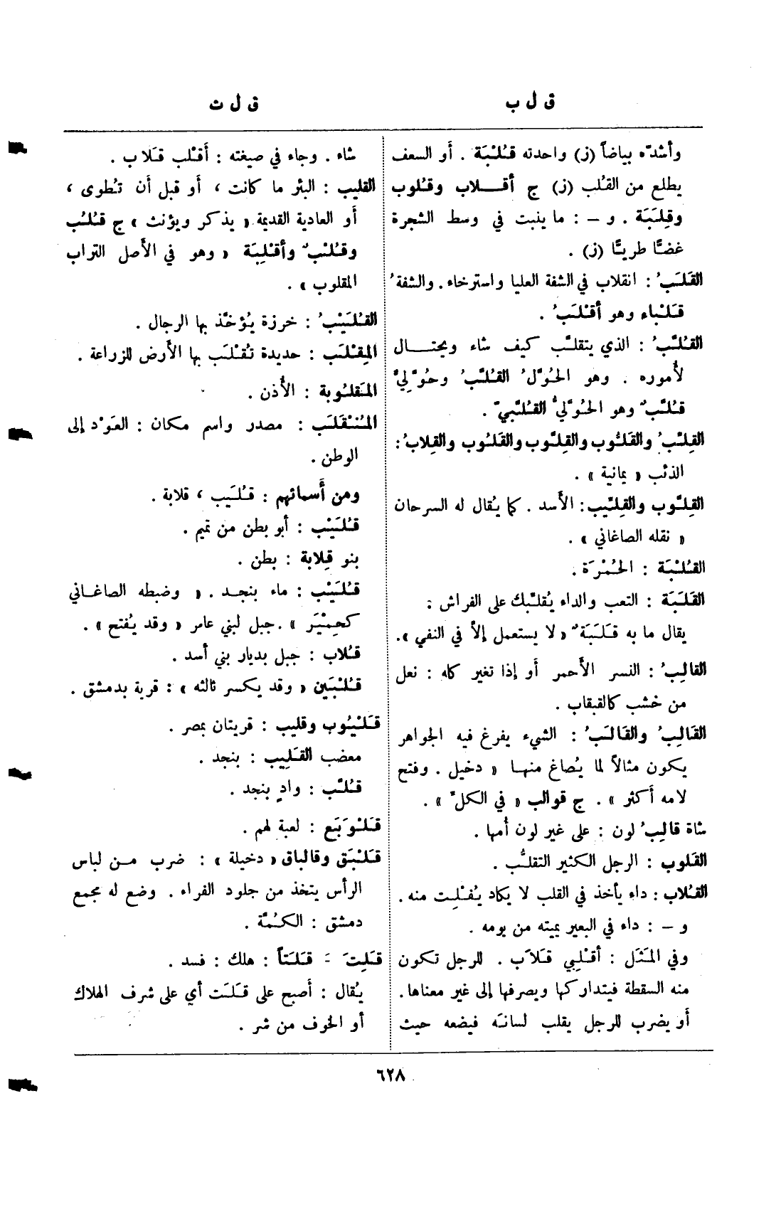 وفي المثل: أقلبي قلاب. للرجل تكون منه السقطة فيتداركها ويصرفها إلى غير معناها. أو يضرب للرجل يقلب لسانه فيضعه حيث شاء. وجاء في صيغته: أقلب قلاب.