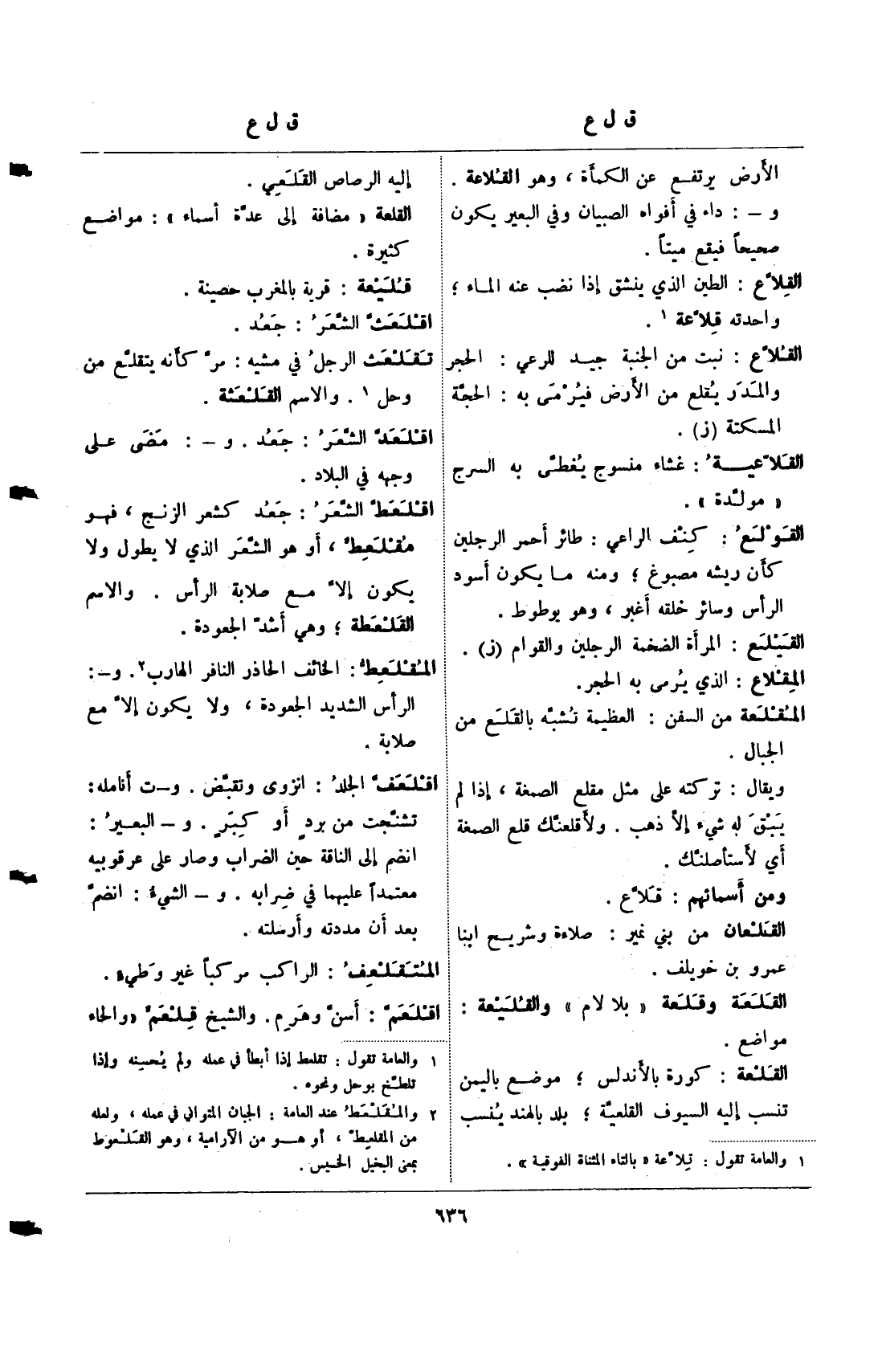 المقلعط: الخائف الحاذر النافر الهارب (¬3). و-: الرأس الشديد الجعودة، ولا يكون إلا مع صلابة.