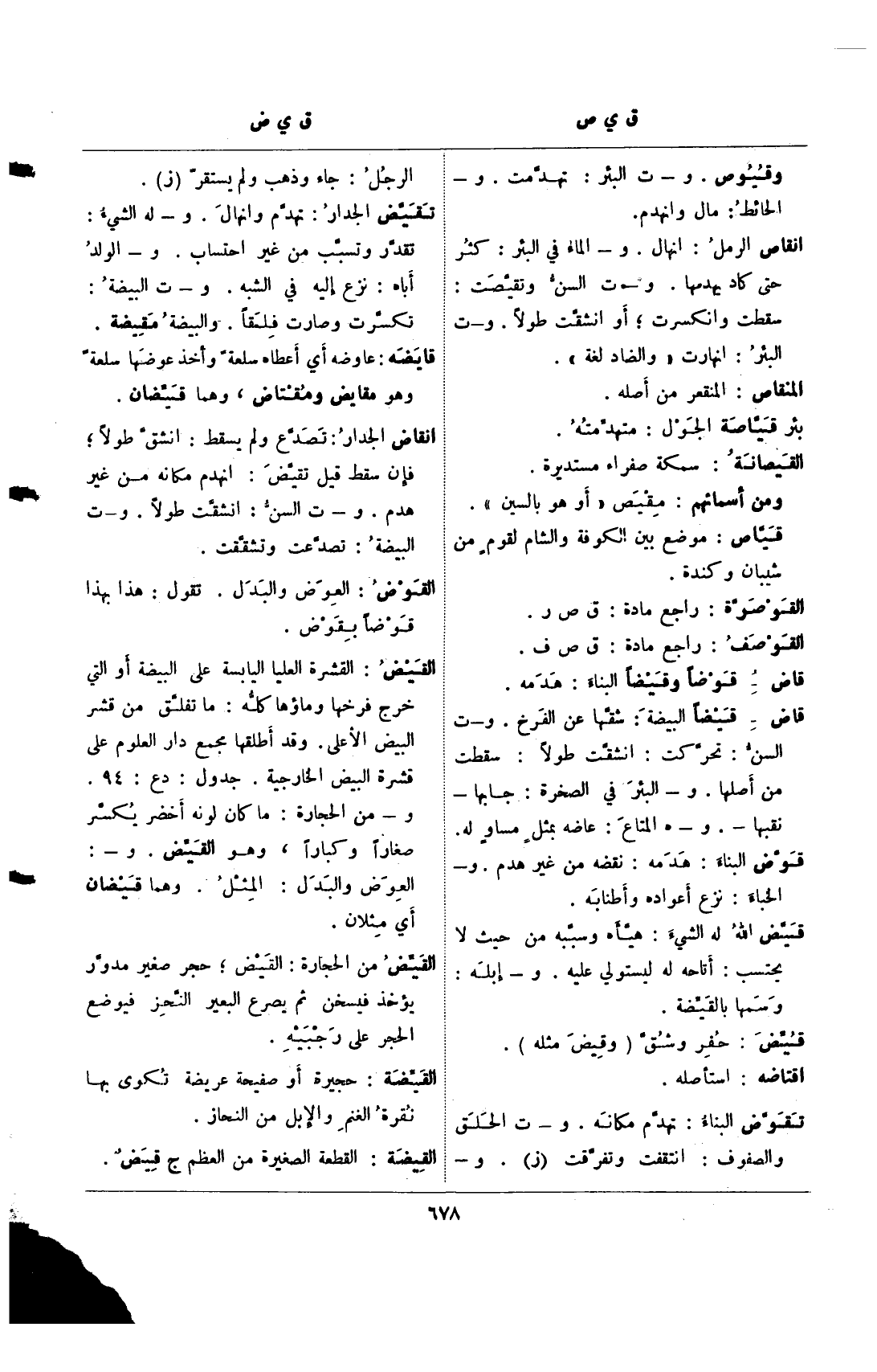 قاض- قيضا البيضة: شقها عن الفرخ. و- ت السن: تحركت: انشقت طولا: سقطت من أصلها. و- البئر في الصخرة: جابها- نقبها-. و- هـ المتاع: عاضه بمثل مساو له.