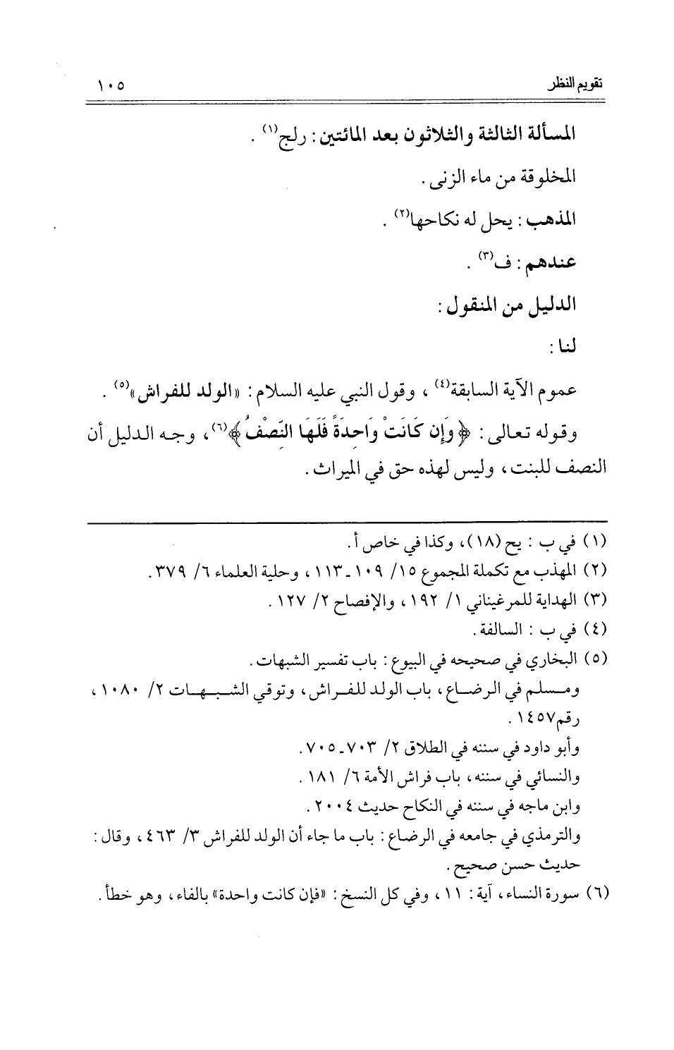 كتاب تقويم النظر في مسائل خلافية ذائعة (اسم الجزء: 4)