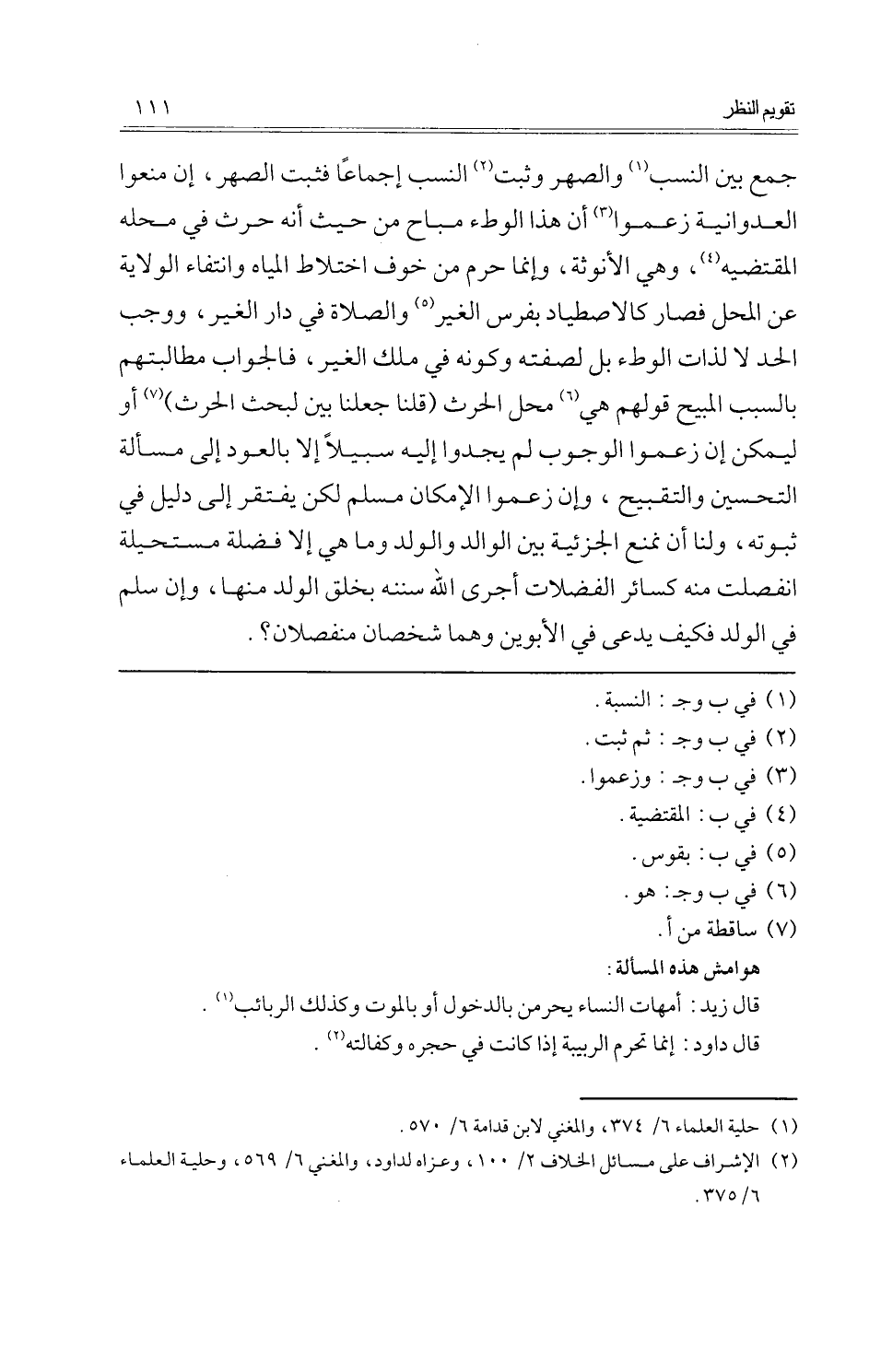 كتاب تقويم النظر في مسائل خلافية ذائعة (اسم الجزء: 4)