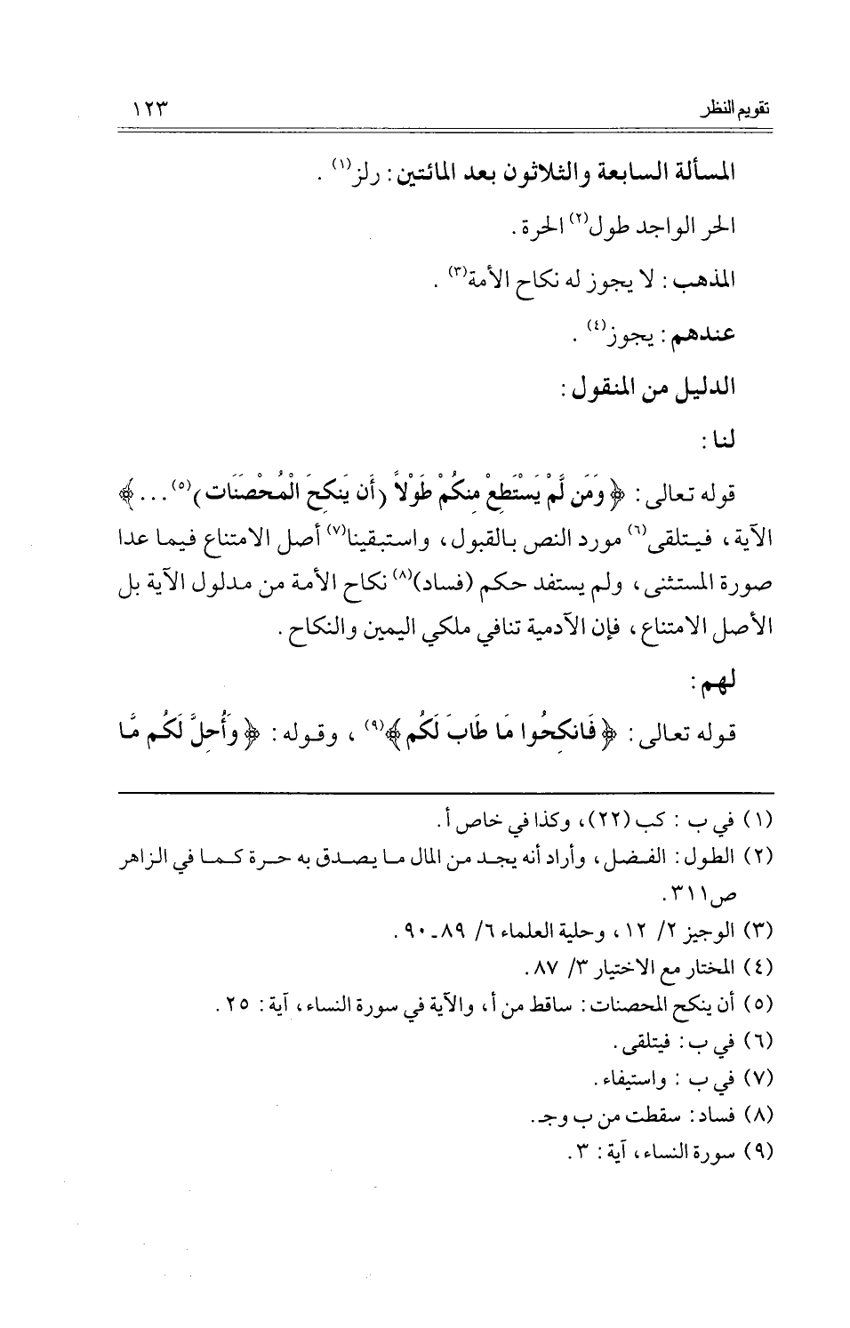 كتاب تقويم النظر في مسائل خلافية ذائعة (اسم الجزء: 4)