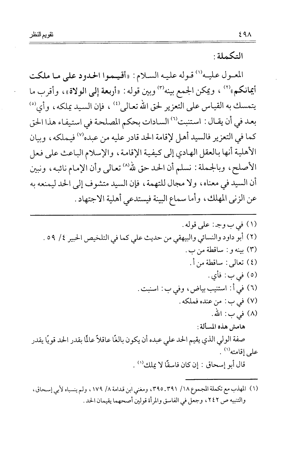 كتاب تقويم النظر في مسائل خلافية ذائعة (اسم الجزء: 4)