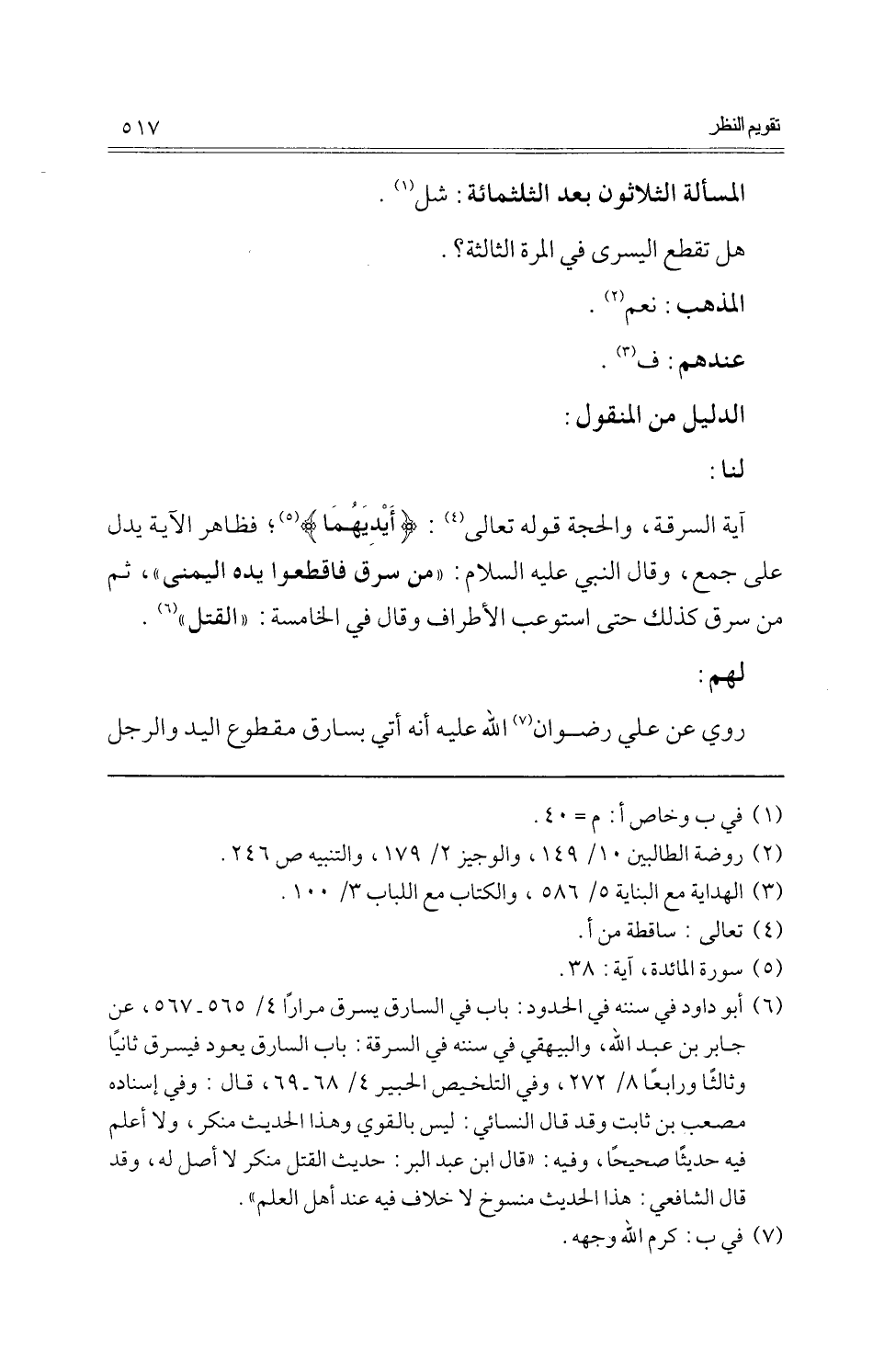 هَل تقطع الْيُسْرَى فِي الْمرة الثَّالِثَة؟ .