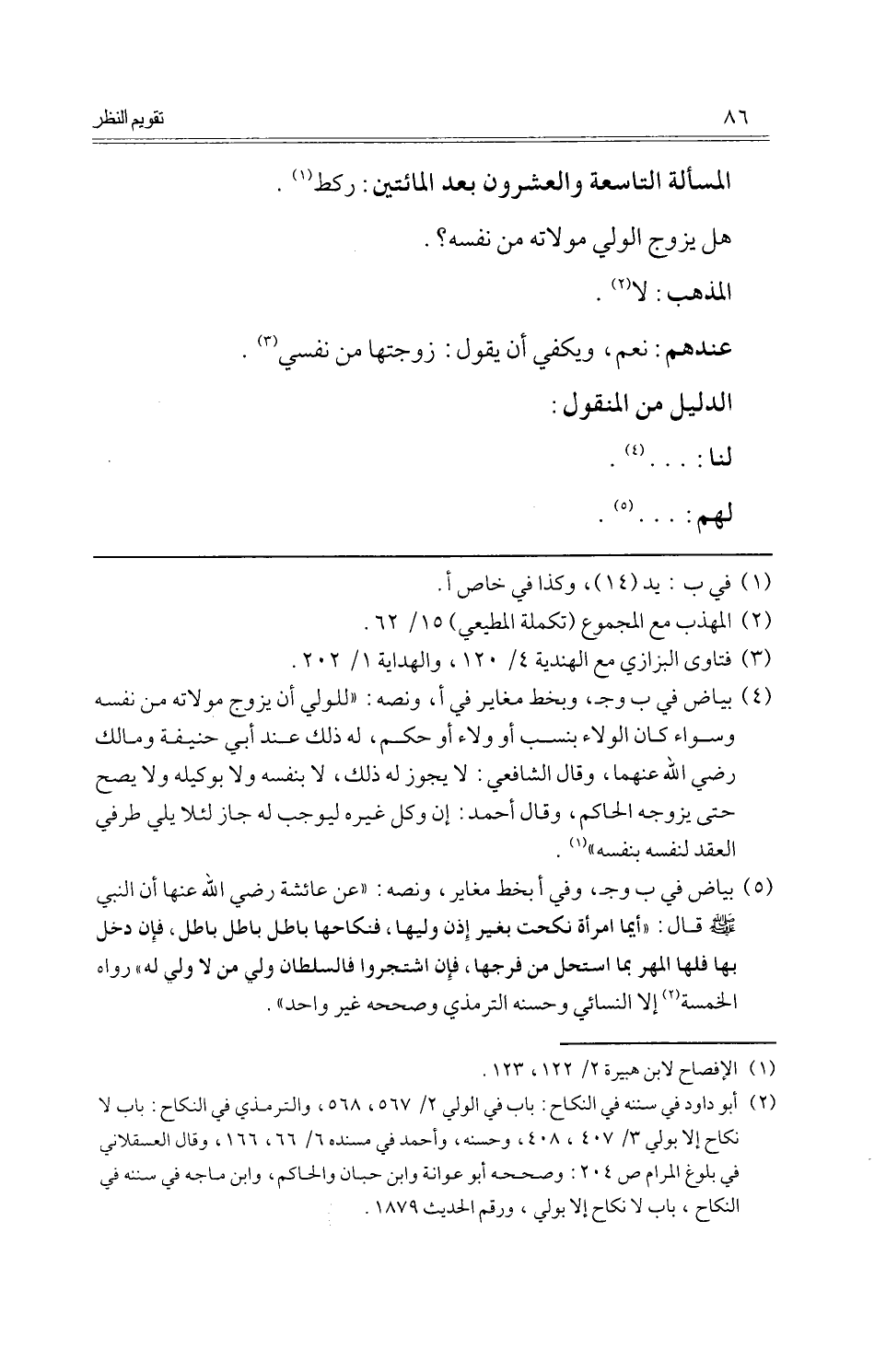 كتاب تقويم النظر في مسائل خلافية ذائعة (اسم الجزء: 4)