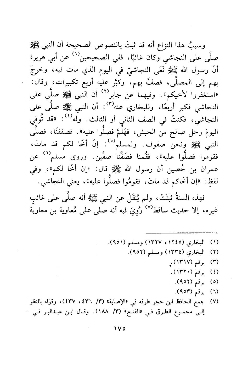 فهذه السنةُ ثبتَتْ، ولم يُنقَلْ عن النبي - صَلَّى اللَّهُ عَلَيْهِ وَسَلَّمَ - أنه صلَّى على غائب غيره، إلا حديث ساقط (7) رُوِيَ فيه أنه صلى على مُعاوية بن معاوية