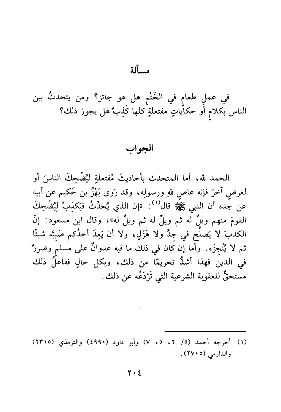 في عملِ طعام في الخَتْمِ هل هو جائز؟ ومن يتحدثُ بين الناس بكلامٍ أو حكاياتٍ مفتعلةٍ كلها كَذِبٌ هل يجوز ذلك؟