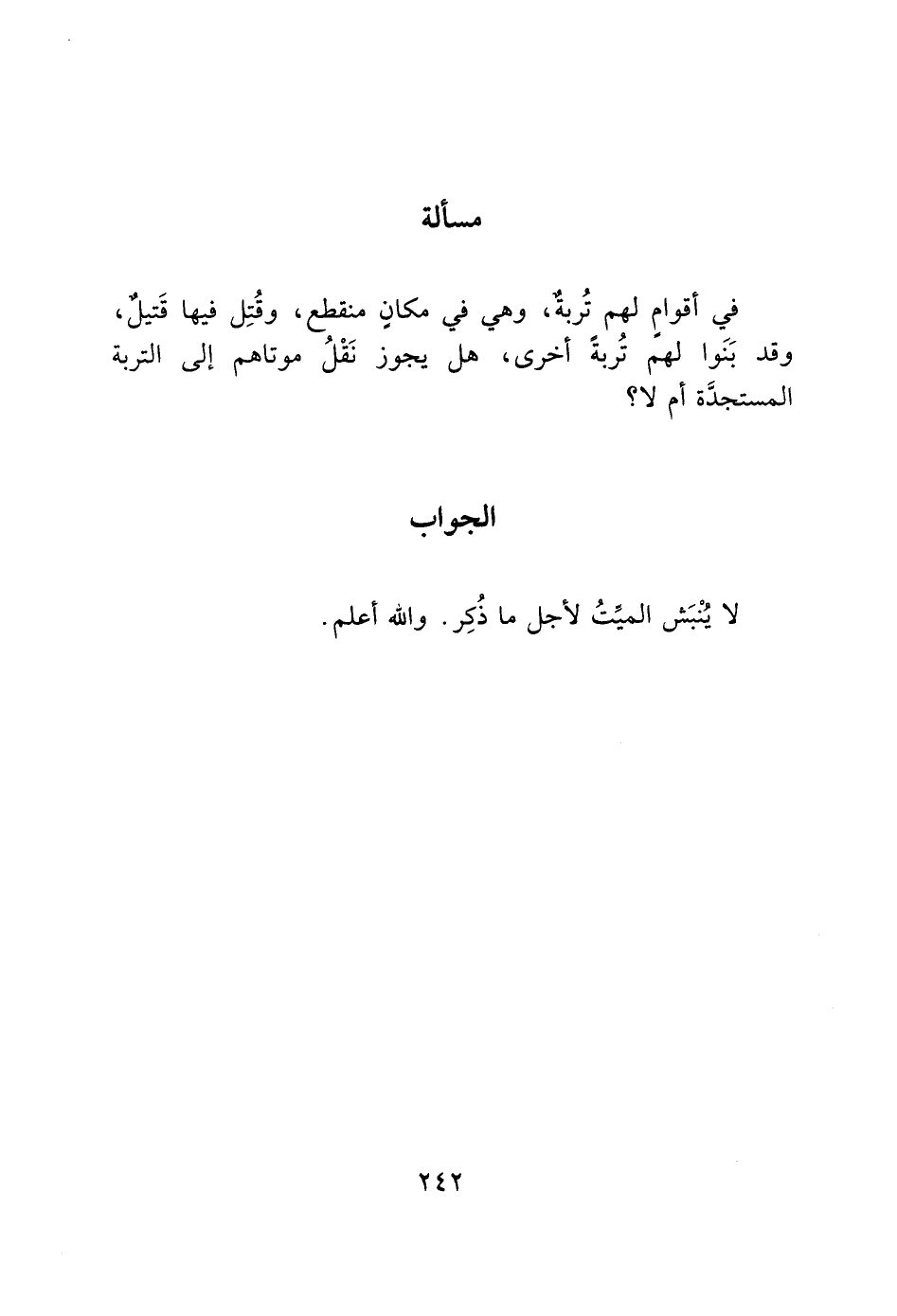 في أقوامٍ لهم تُربةٌ، وهي في مكانٍ منقطع، وقُتِل فيها قَتيلٌ، وقد بَنَوا لهم تُربةً أخرى، هل يجوز نَقْلُ موتاهم إلى التربة المستجدَّة أم لا؟