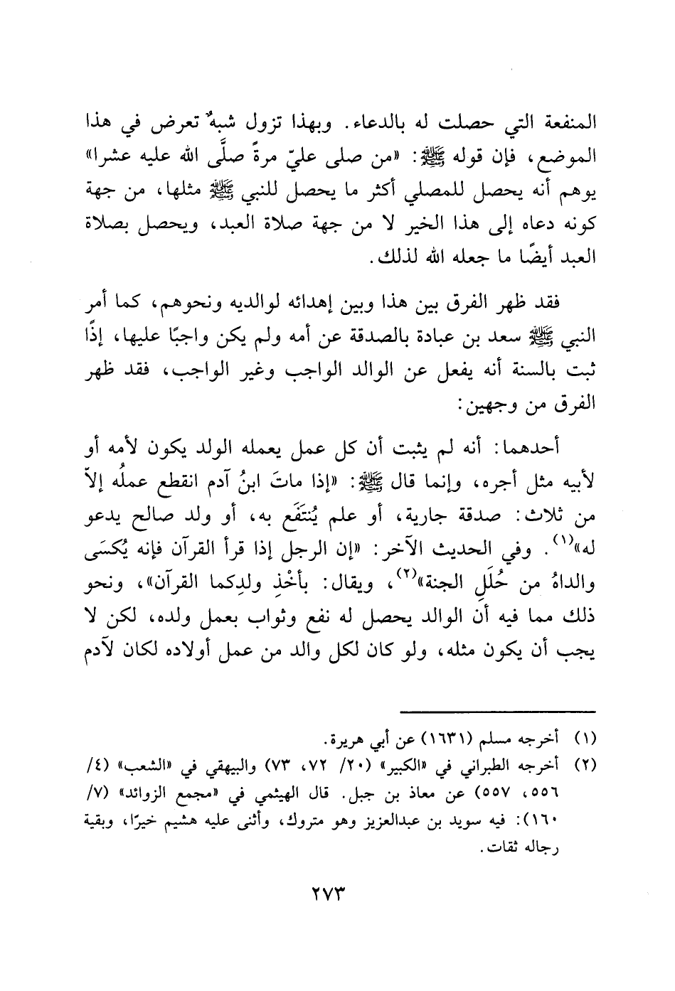 المنفعة التي حصلت له بالدعاء. وبهذا تزول شبه تعرض في هذا الموضع، فإن قوله - صَلَّى اللَّهُ عَلَيْهِ وَسَلَّمَ -: "من صلى عليّ مرة صلّى الله عليه عشرا" يوهم أنه يحصل للمصلي أكثر ما يحصل للنبي - صَلَّى اللَّهُ عَلَيْهِ وَسَلَّمَ - مثلها، من جهة كونه دعاه إلى هذا الخير لا من جهة صلاة العبد، ويحصل بصلاة العبد أيضًا ما جعله الله لذلك.