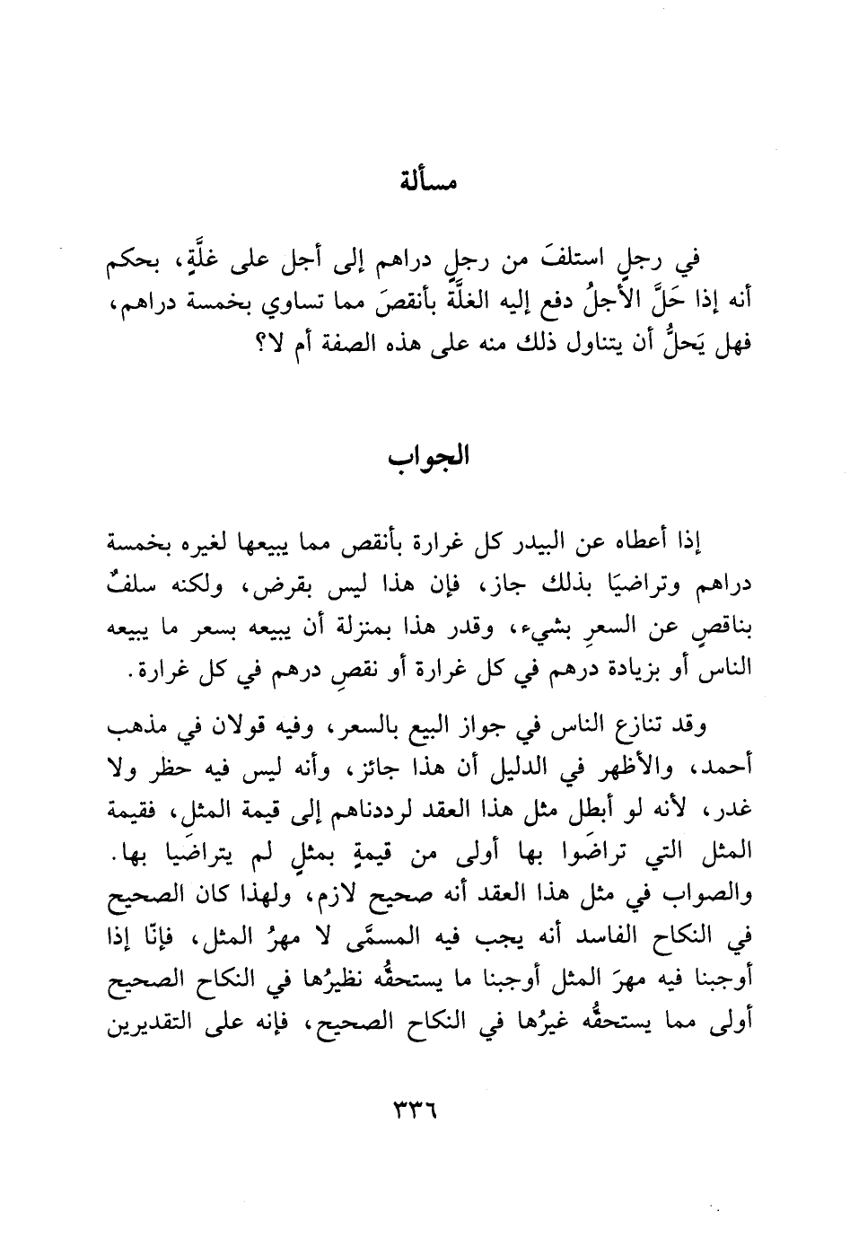 وقد تنازع الناس في جواز البيع بالسعر، وفيه قولان في مذهب أحمد، والأظهر في الدليل أن هذا جائز، وأنه ليس فيه حظر ولا غدر، لأنه لو أبطل مثل هذا العقد لرددناهم إلى قيمة المثل، فقيمة المثل التي تراضَوا بها أولى من قيمةٍ بمثلٍ لم يتراضَيا بها.