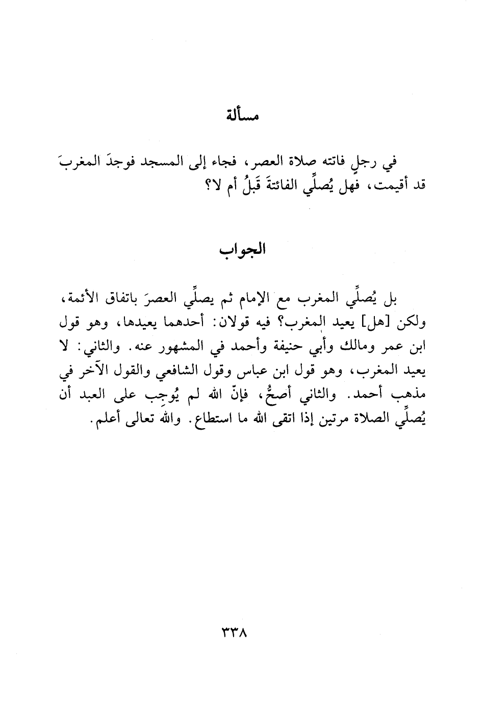 في رجلٍ فاتته صلاة العصر، فجاء إلى المسجد فوجدَ المغربَ قد أقيمت، فهل يصلّي الفائتةَ قَبلُ أم لا؟