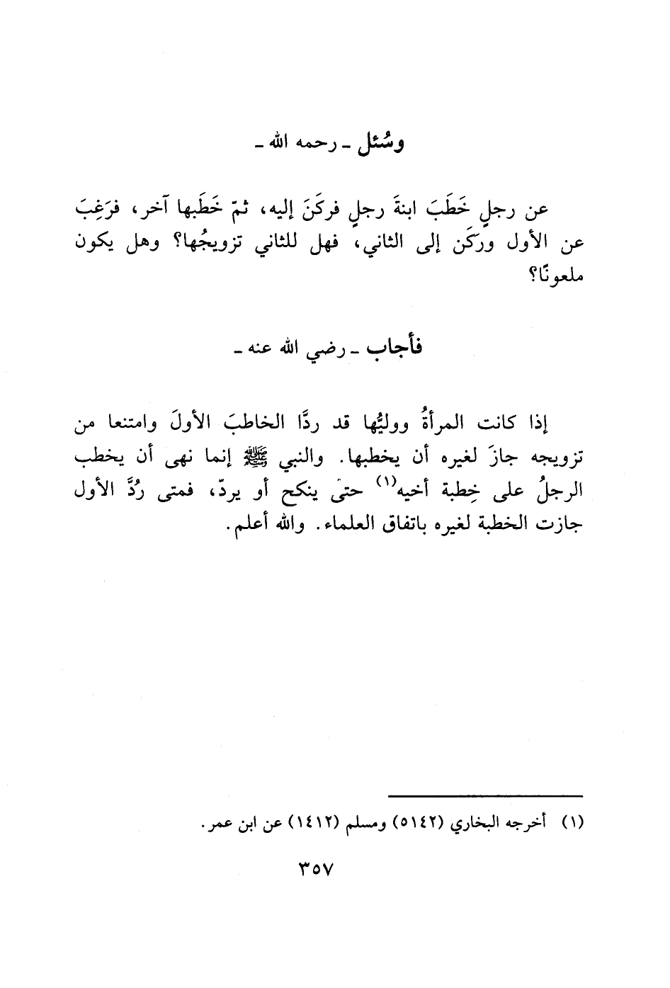 عن رجلٍ خَطَبَ ابنةَ رجلٍ فركَنَ إليه، ثمّ خَطَبها آخر، فرَغِبَ عن الأول وركَن إلى الثاني، فهل للثاني تزويجُها؟ وهل يكون ملعونًا؟