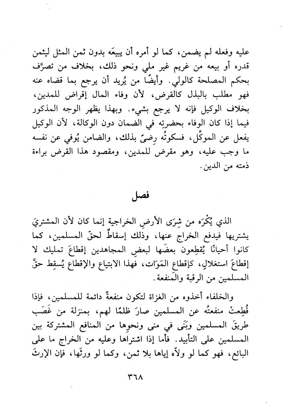 والخلفاء أخذوه من الغزاة لتكون منفعةً دائمة للمسلمين، فإذا قُطِعتْ منفعتُه عن المسلمين صارَ ظلمًا لهم، بمنزلة من غَصب طريقَ المسلمين وبَنَى في منى ونحوِها من المنافع المشتركة بين المسلمين على التأبيد. فأما إذا اشتراها وعليه من الخراج ما على البائع، فهو كما لو ولاّه إياها بلا ثمن، وكما لو ورثَها، فإن الإرثَ