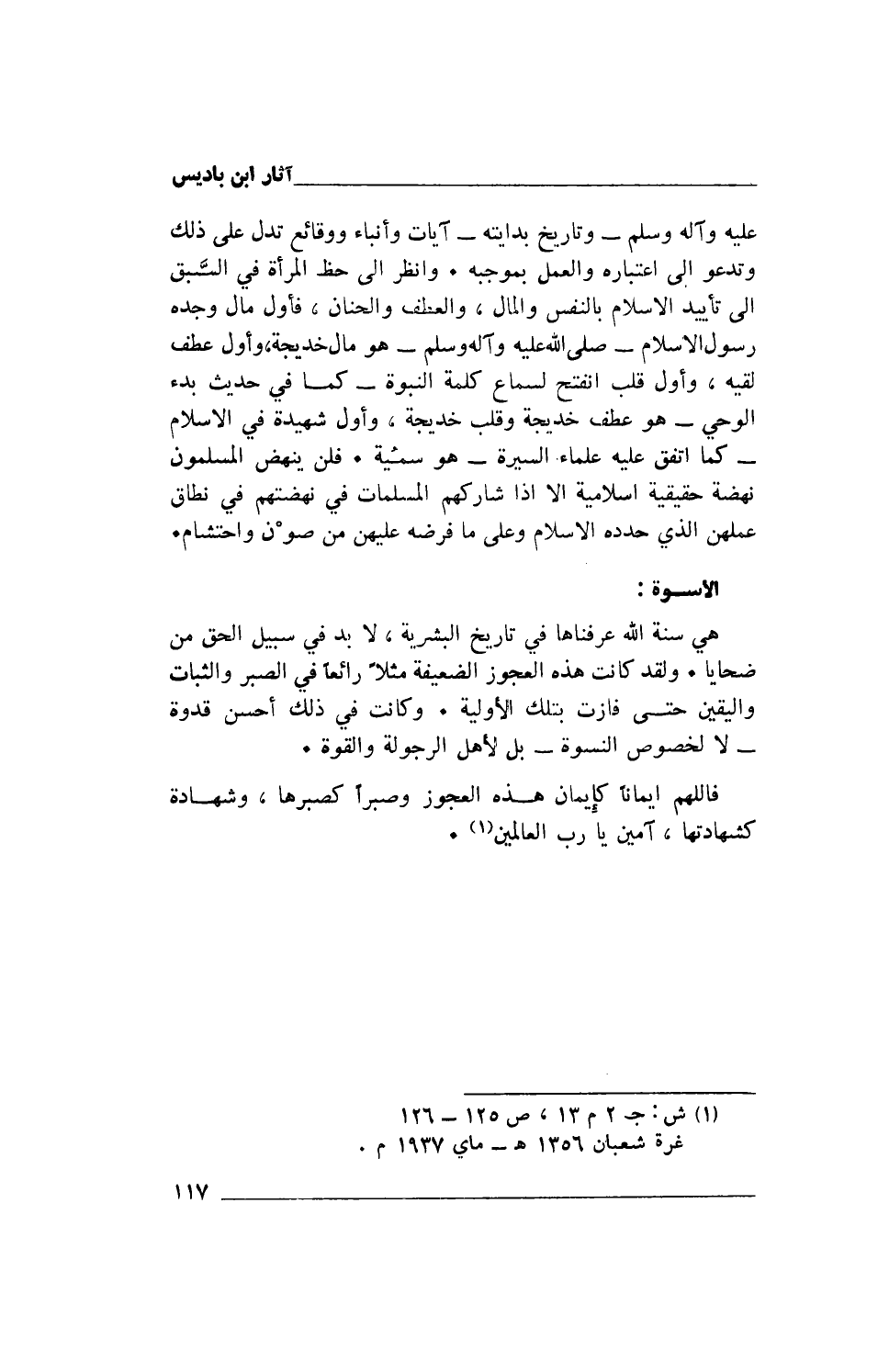 (1) ش: ج 2 م 13، ص 125 - 126 غرة شعبان 1356ه - ماي 1937م.