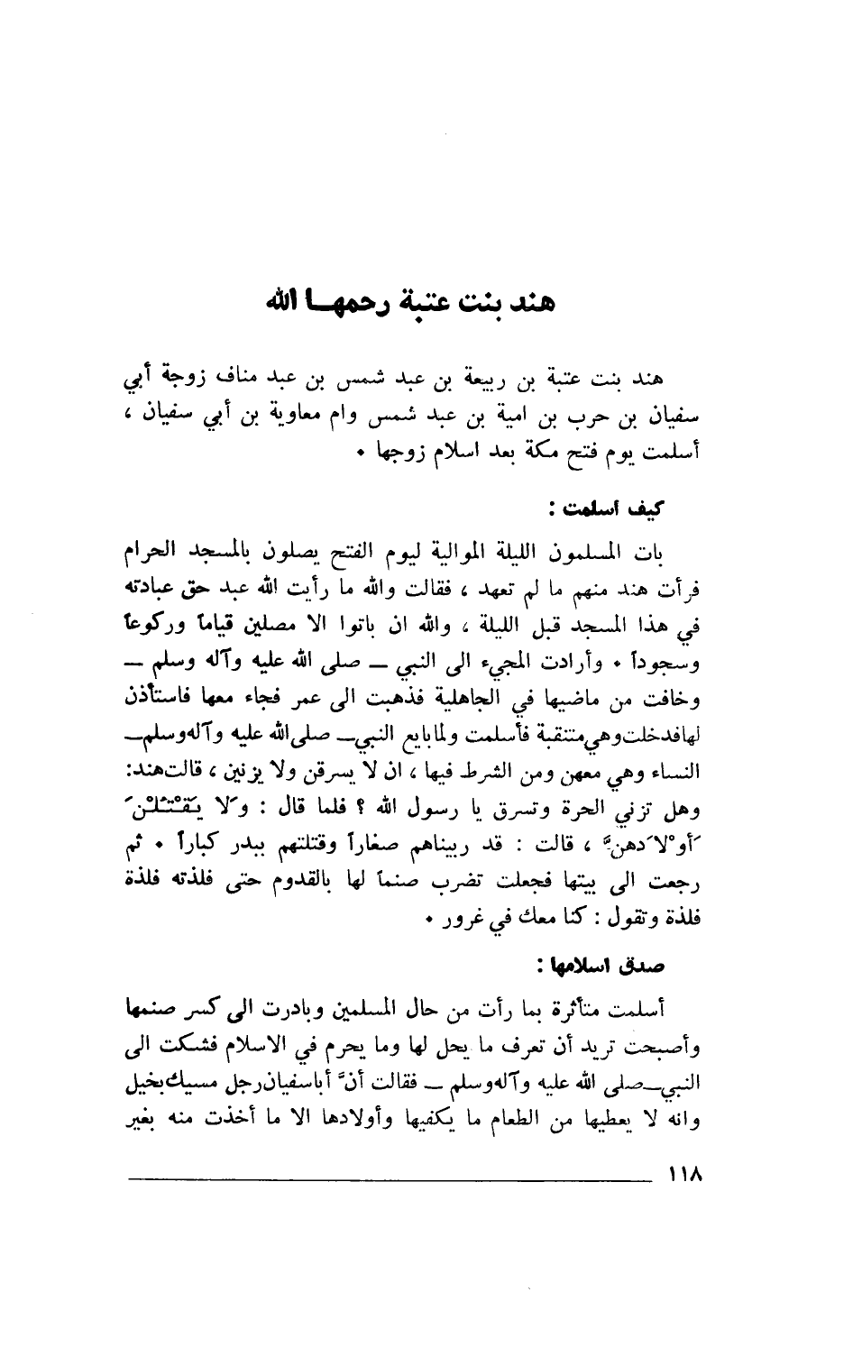 هند بنت عتبة بن ربيعة بن عبد شمس بن عبد مناف زوجة أبي سفيان بن حرب بن أمية بن عبد شمس وأم معاوية بن أبي سفيان، أسلمت يوم فتح مكة بعد إسلام زوجها.