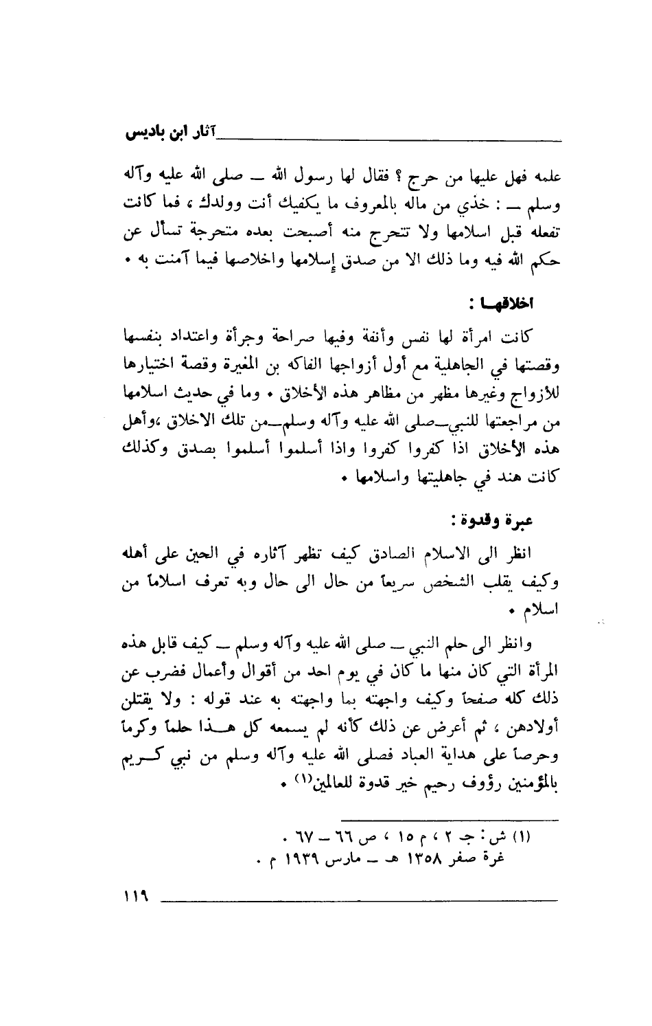 (1) ش: ج 2، م 15، ص 66 - 67. غرة صفر 1358ه - مارس 1939م.