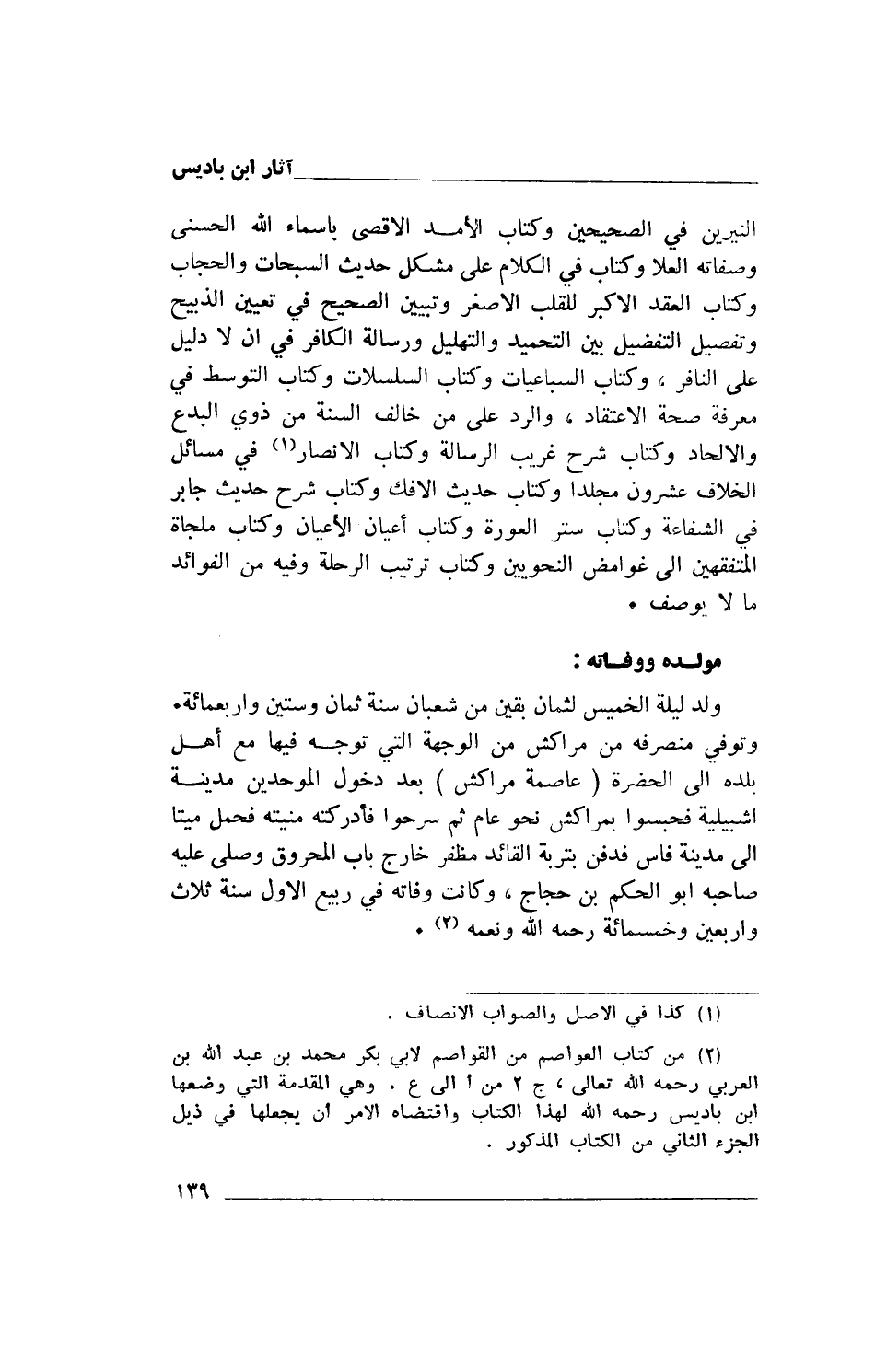 (2) من كتاب العواصم من القواصم لأبي بكر محمد بن عبد الله بن العربي رحمه الله تعالى، ج 2 من أ إلى ع. وهي المقدمة التي وضعها ابن باديس رحمه الله لهذا الكتاب واقتضاه الأمر أن يجعلها في ذيل الجزء الثاني من الكتاب المذكور.