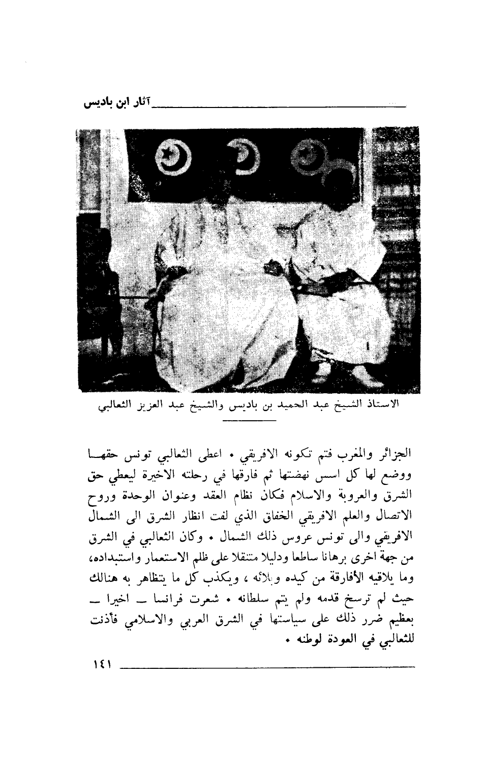 [صورة: الأستاذ الشيخ عبد الحميد بن باديس والشيخ عبد العزيز الثعالبي]