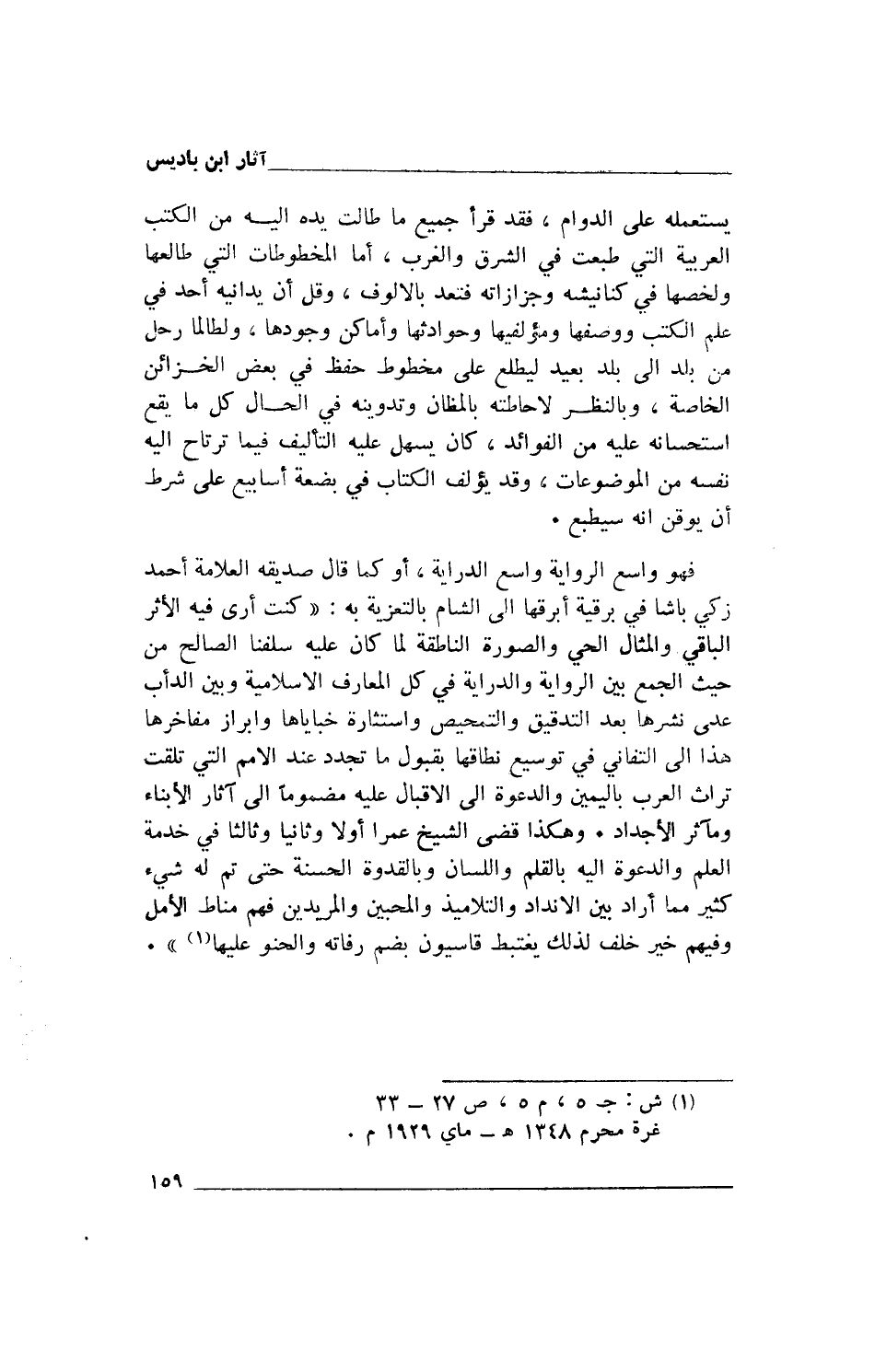 (1) ش: ج 5، م 5، ص 27 - 33 غرة محرم 1348ه - ماي 1926م.